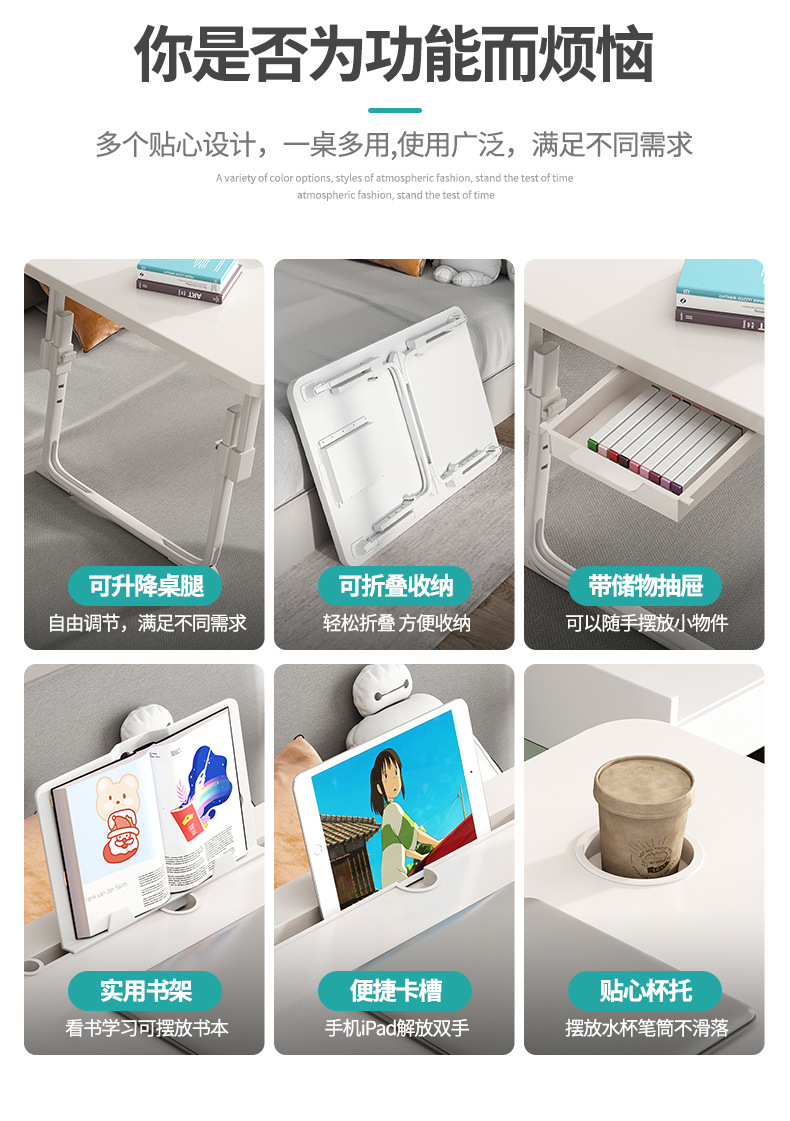 높이 조절 가능한 침대용 작은 테이블 기숙사 상층 침대 학습용 책상 학생용 컴퓨터 책상 접이식 테이블