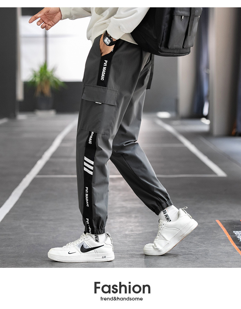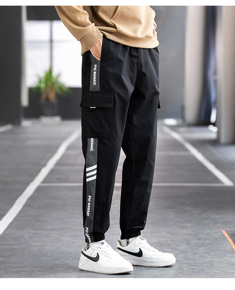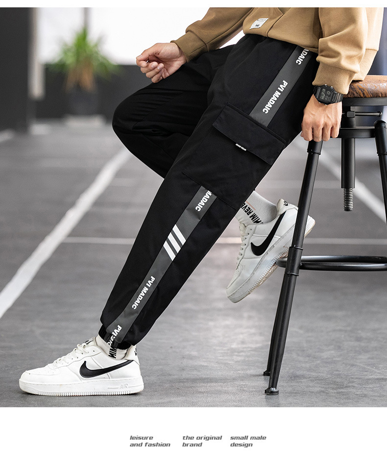 봄과 여름 남자 일본 작업복은 트렌디 한 남자 바지 십대 멀티 가방 오버롤 캐주얼 바지 학생 바지