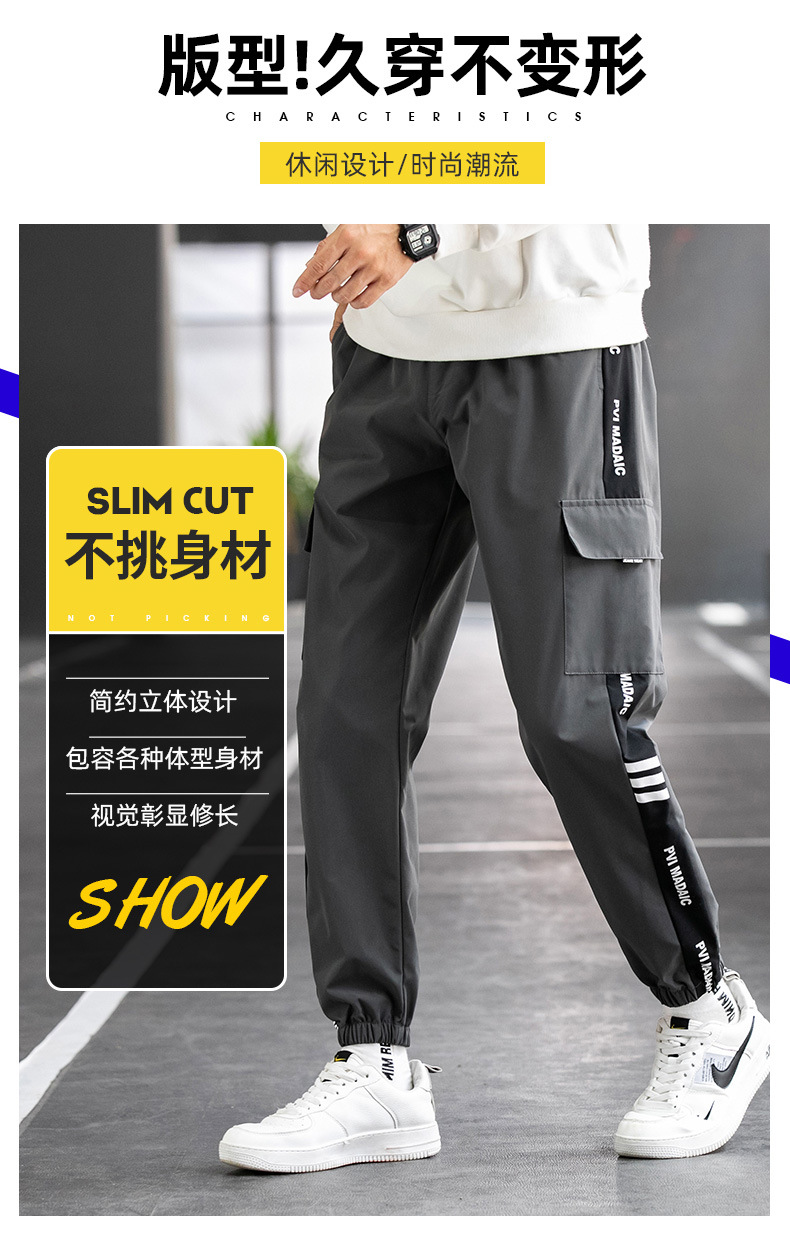 봄과 여름 남자 일본 작업복은 트렌디 한 남자 바지 십대 멀티 가방 오버롤 캐주얼 바지 학생 바지스토어 가기