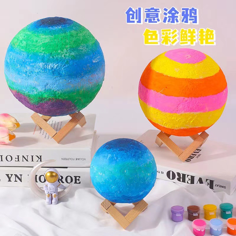 LED 핸드페인팅 DIY 행성 발광 야간등 색칠 달등 장식품 중추절 어린이 낙서 장난감 도매