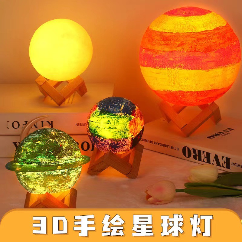 LED 핸드페인팅 DIY 행성 발광 야간등 색칠 달등 장식품 중추절 어린이 낙서 장난감 도매스토어 가기