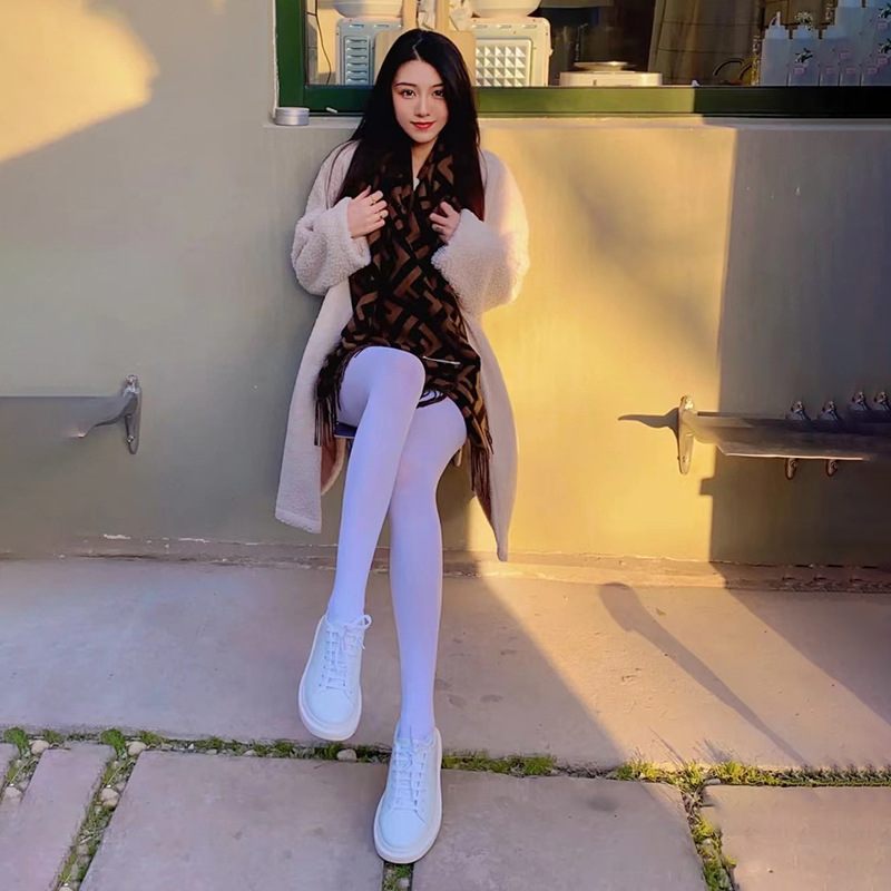 화이트 댄스 양말 성인 봄 가을과 겨울 팬티 스타킹 얇은 벨벳 기모 두꺼운 순수한 흰색 따뜻한 다리 양말스토어 가기