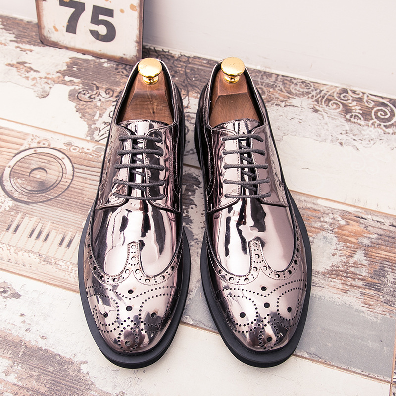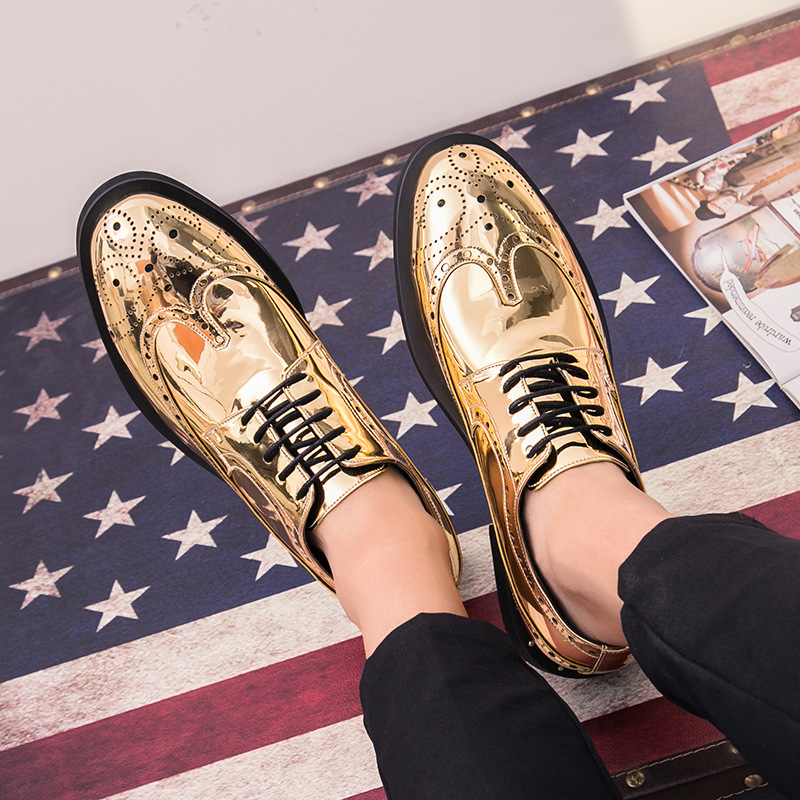 국경 간 패션 밝은 거울 신발 플러스 사이즈 한국 브로그 꽃 가죽 신발 나이트 클럽 성격 골드 레이스 업 가죽 신발