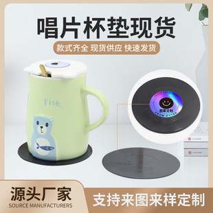 简约复古唱片杯垫纯色家用圆形多功能防烫隔热防滑耐高温咖啡垫