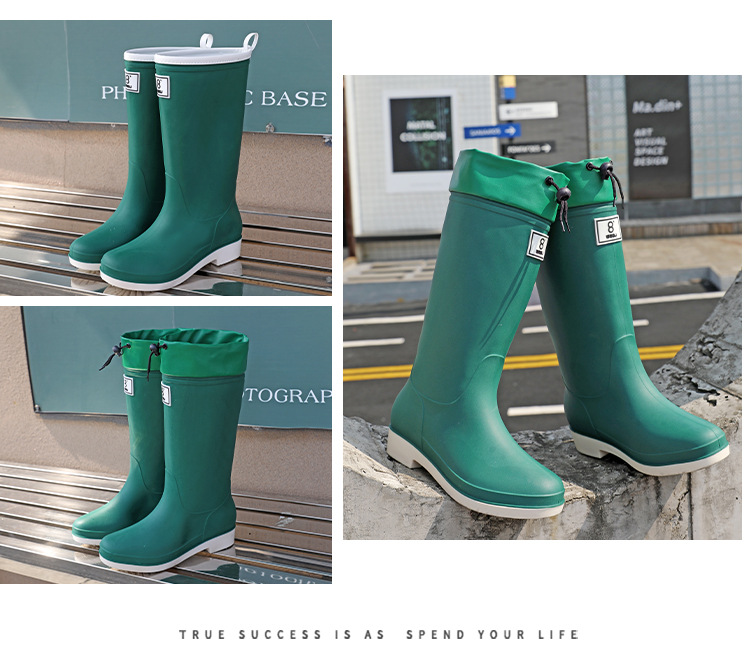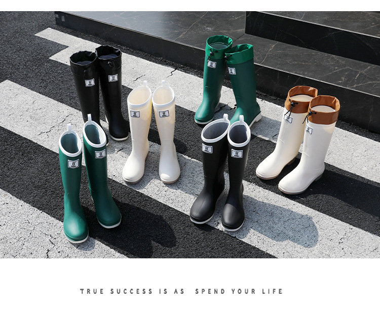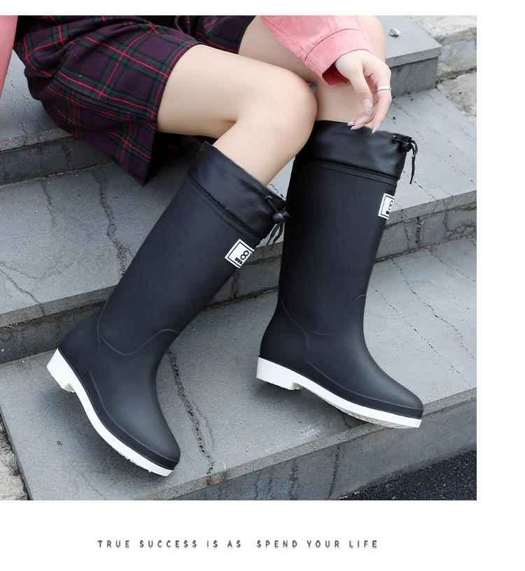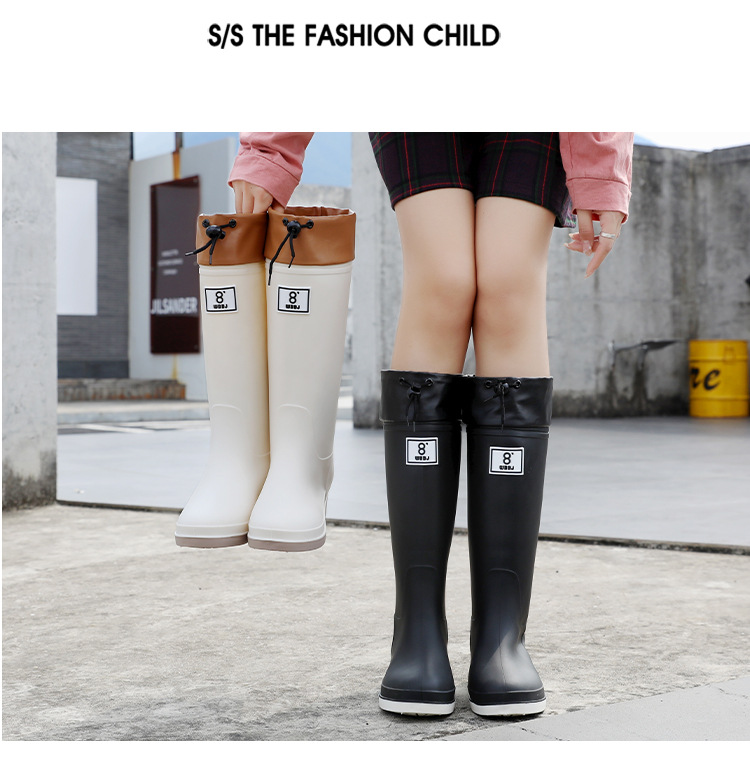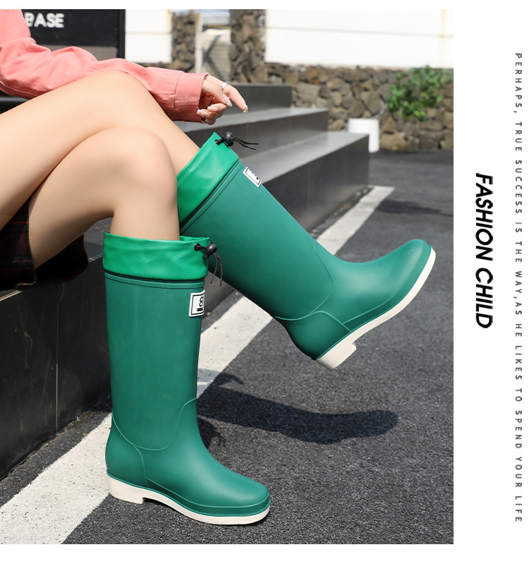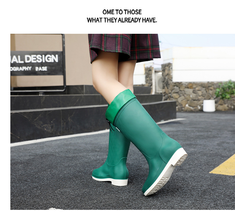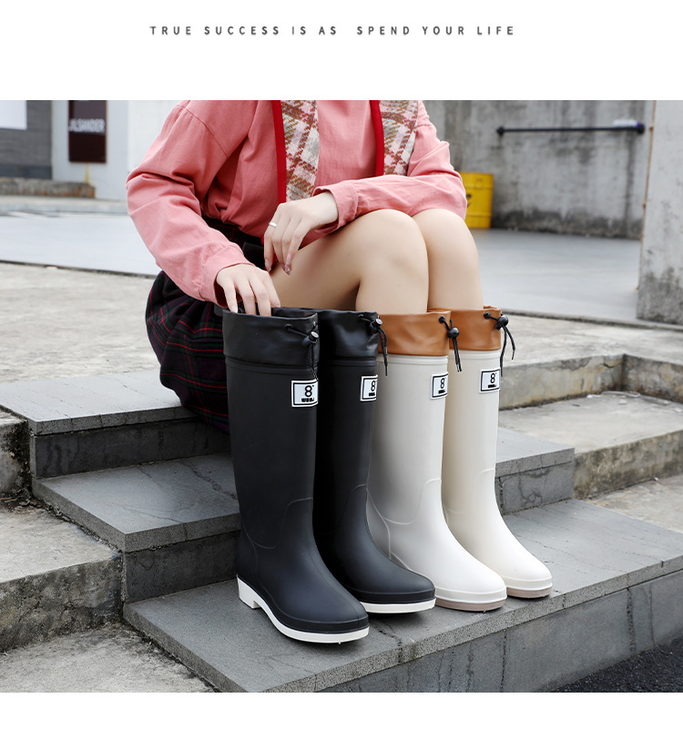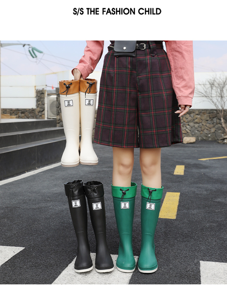 일본 스타일 긴 비 부츠 새로운 아트웍 높은 장화 방수 미끄럼 방지 두꺼운 바닥 물 신발 여성의 부드러운 바닥 미끄럼 방지 부츠스토어 가기