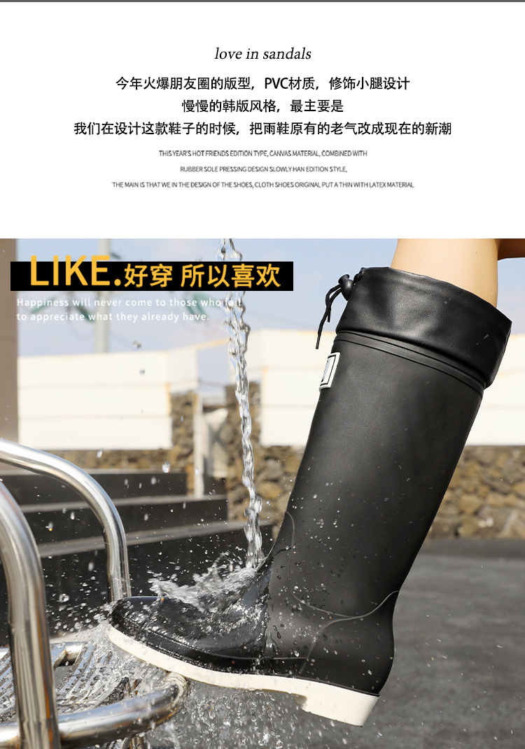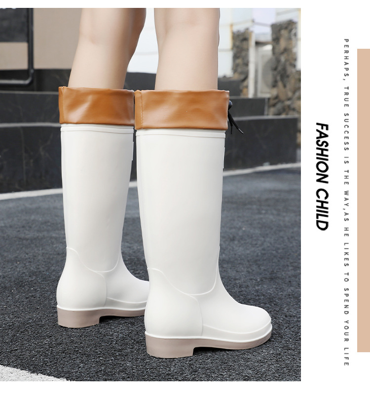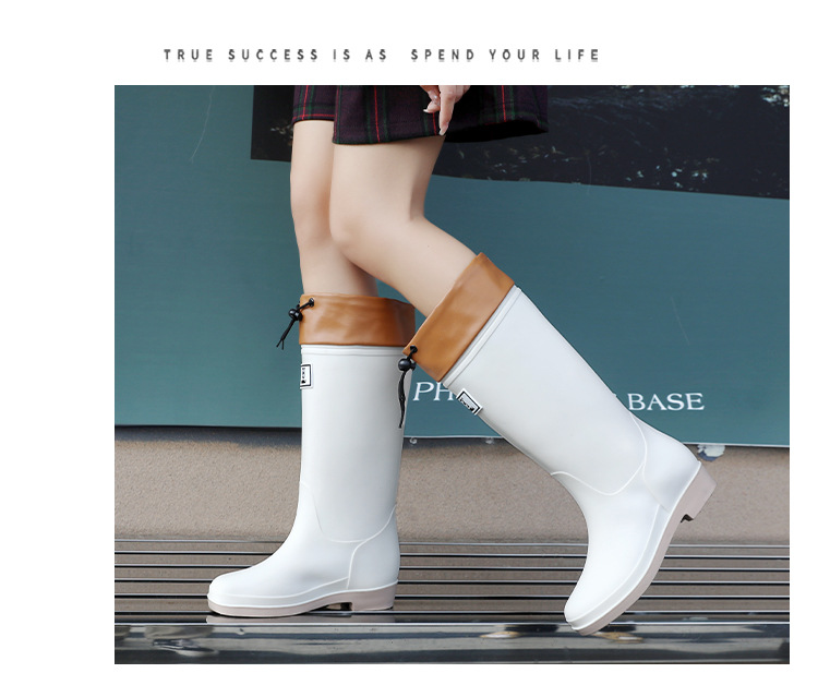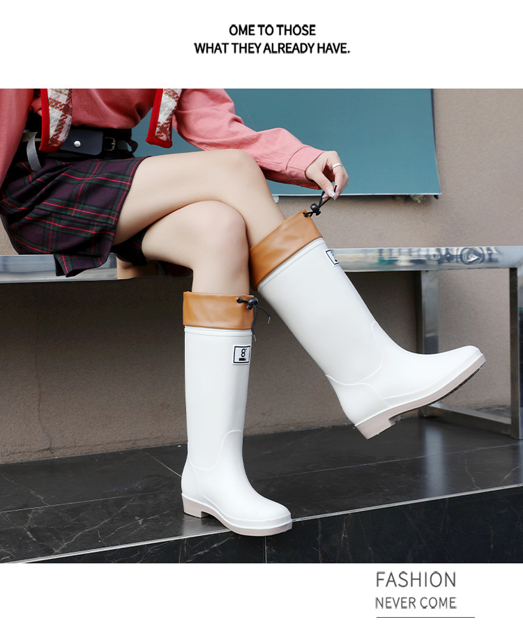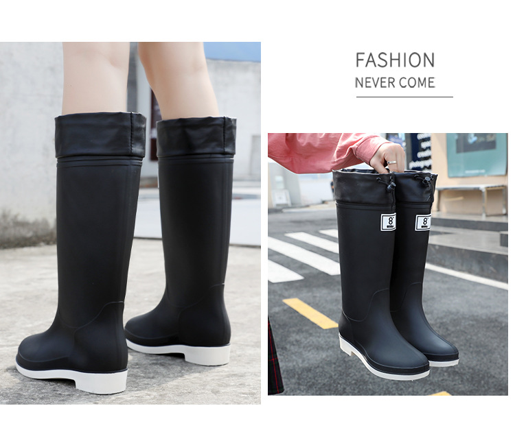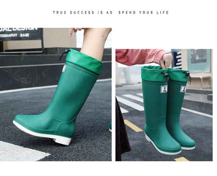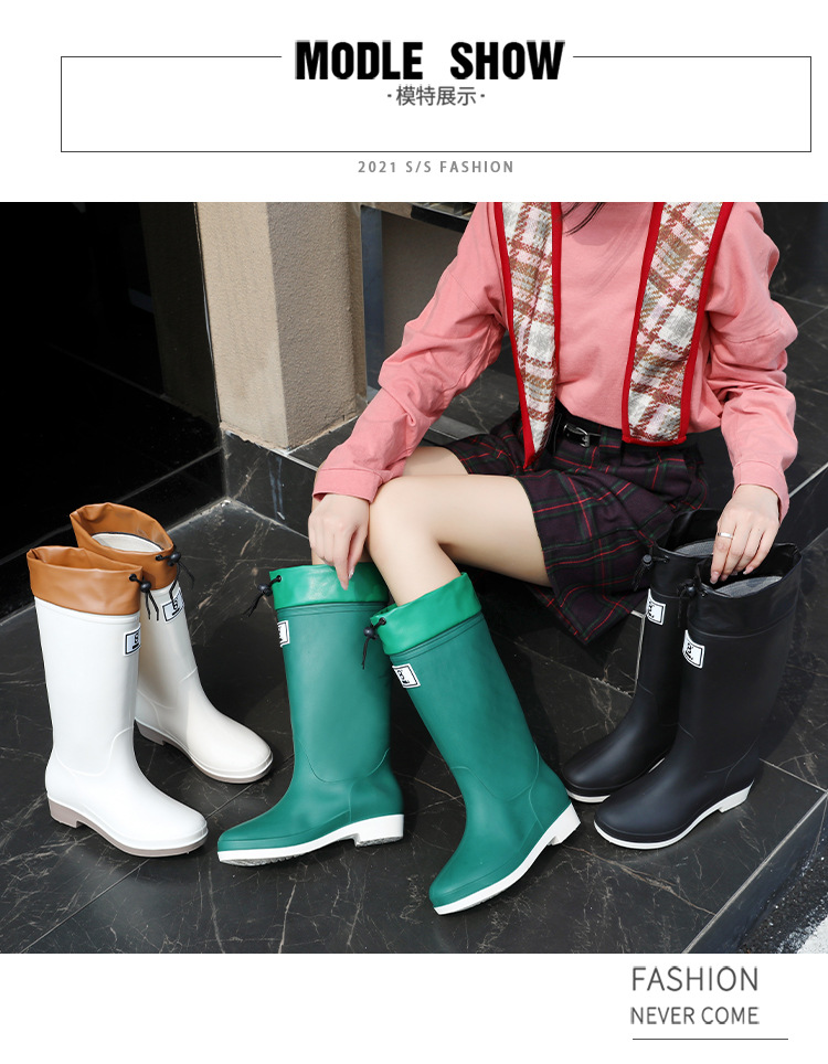 일본 스타일 긴 비 부츠 새로운 아트웍 높은 장화 방수 미끄럼 방지 두꺼운 바닥 물 신발 여성의 부드러운 바닥 미끄럼 방지 부츠스토어 가기