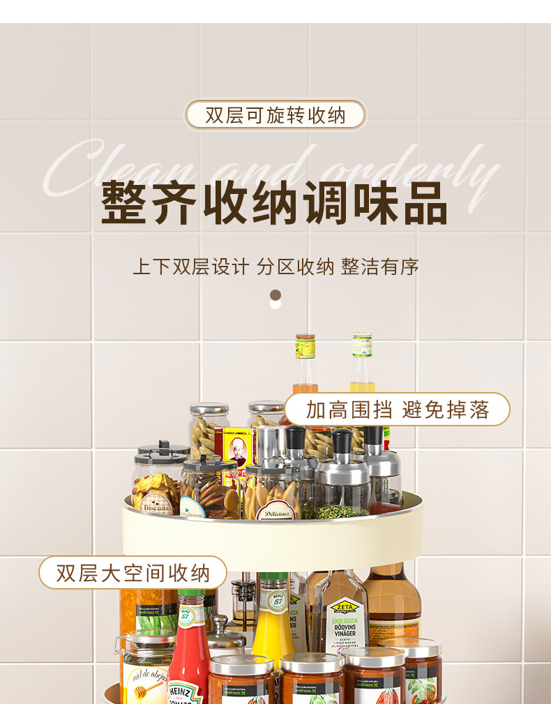 • 크림 컬러 회전 조미료 랙 (2 층)