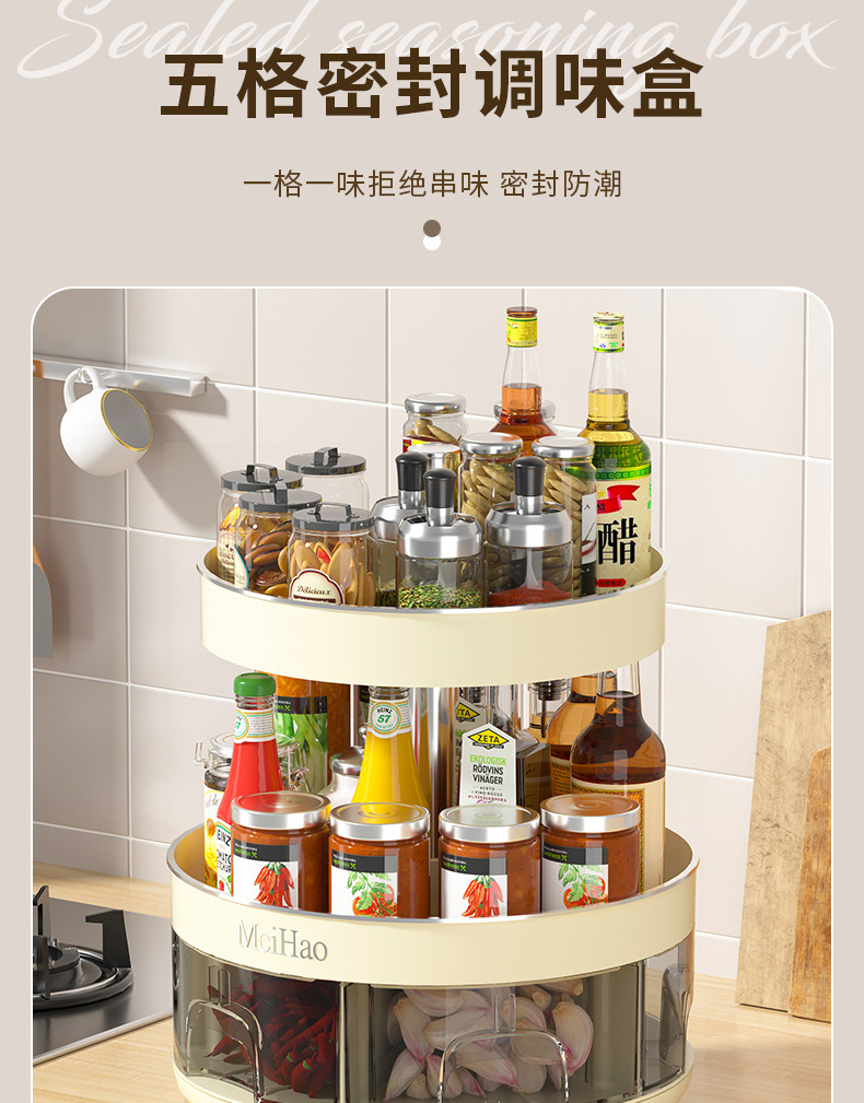 다기능 회전 양념 저장 랙 라운드 양념 랙 주방 오일 소금 소스 및 식초 저장 랙 저장 상자