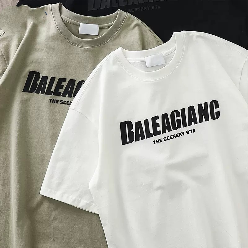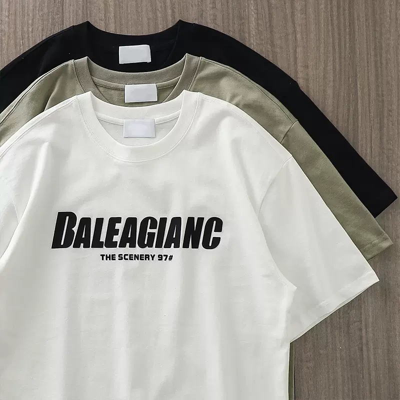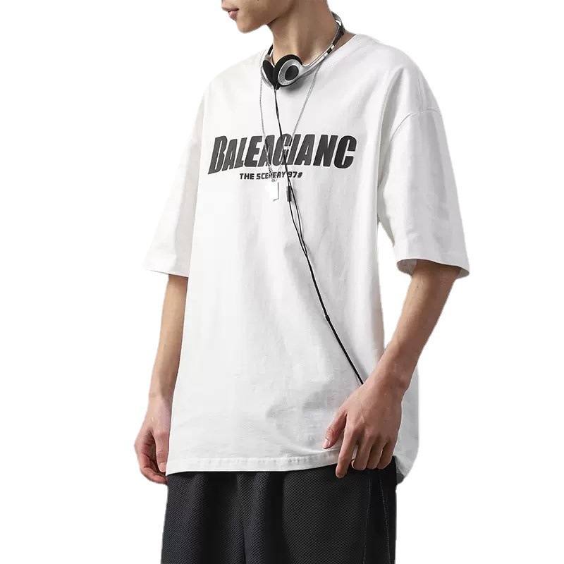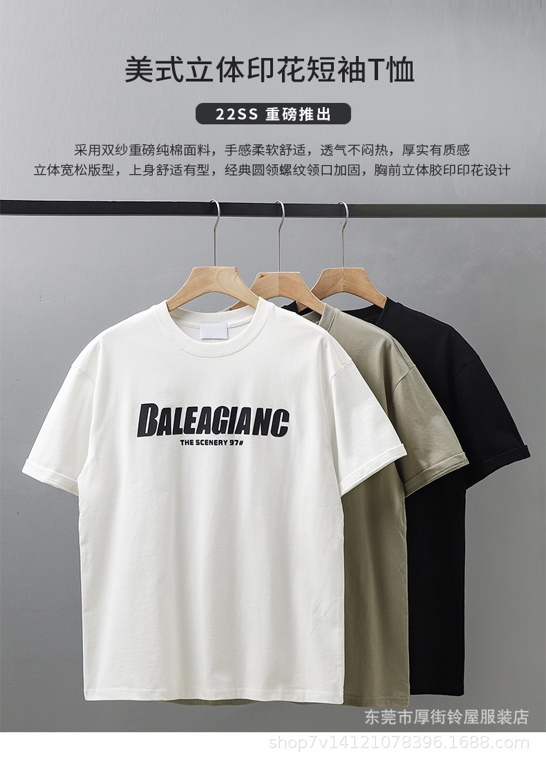 미국 무거운 반팔 티셔츠 남자의 여름 유행 느슨한 오프셋 인쇄 남자의 두꺼운 통기성 순수한 면베이스 셔츠스토어 가기
