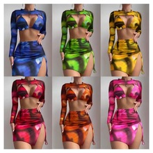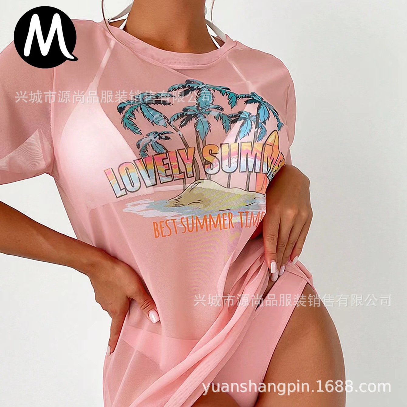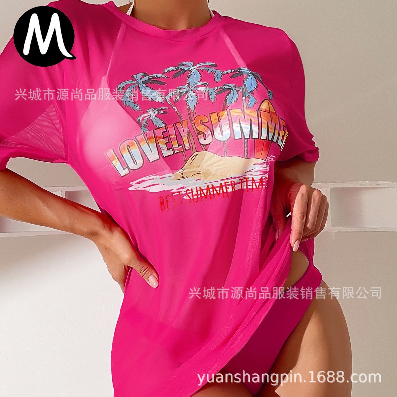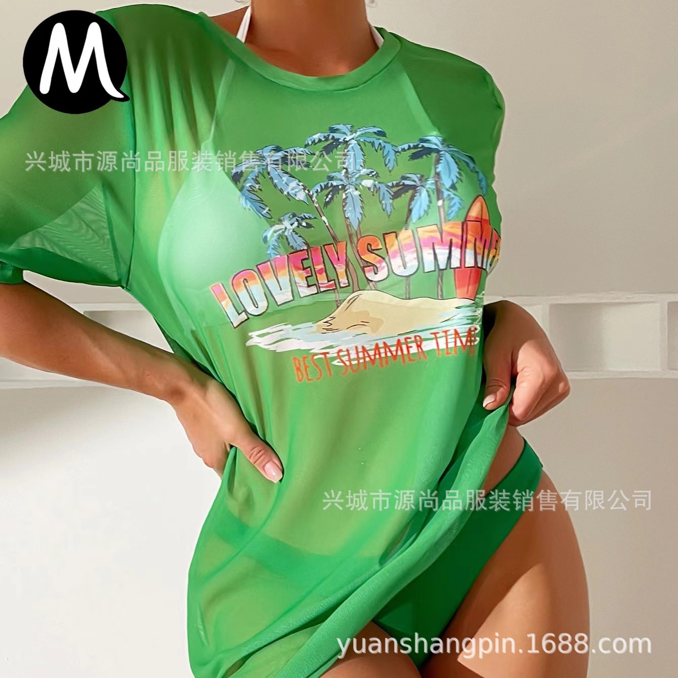 2025 새로운 유럽과 미국의 프린트 수영복 3피스 비키니 메쉬 대외 무역 프린트 비키니 AliExpress 수영복