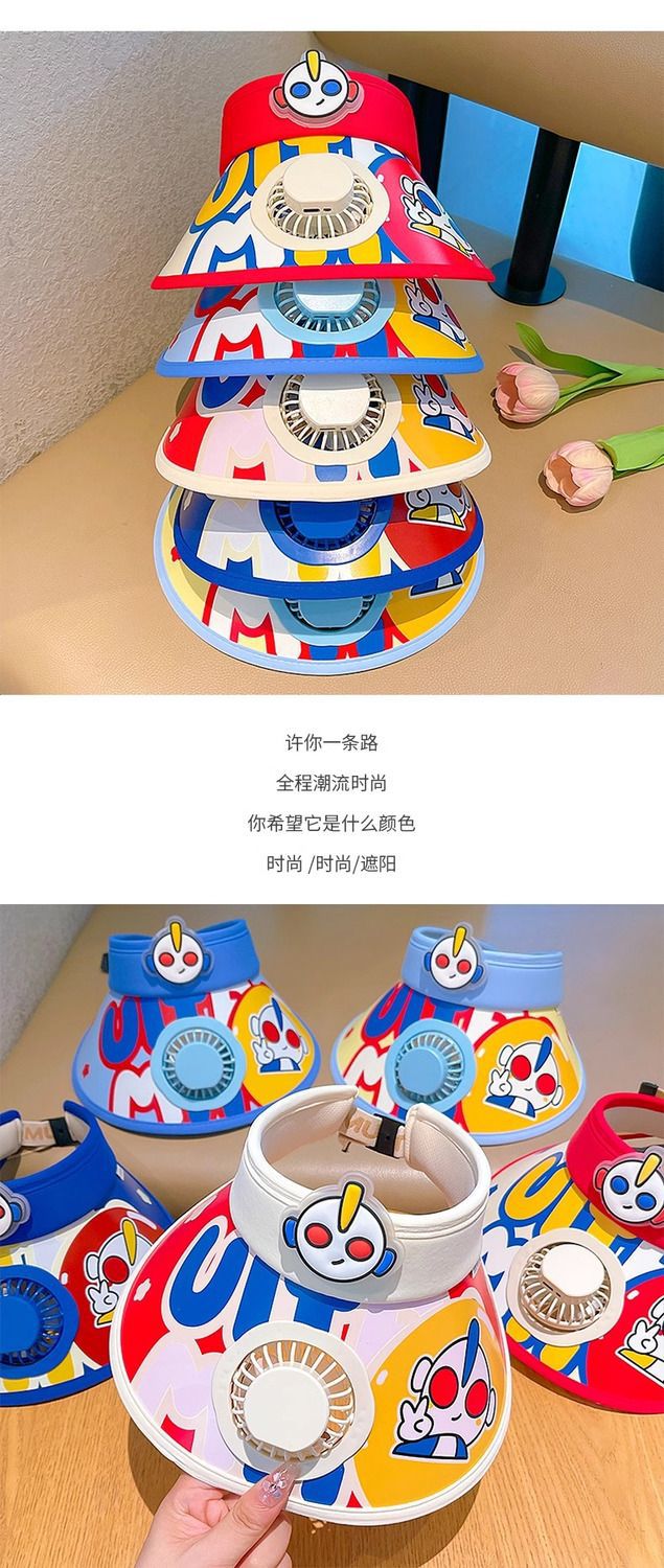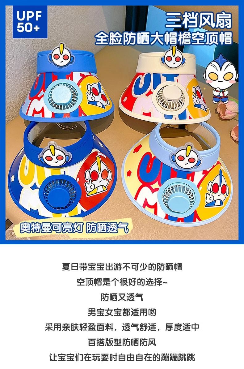 남학생과 여학생을위한 여름 얇은 태양 모자 빈 탑 팬이있는 울트라 맨 어린이 선 스크린 모자스토어 가기