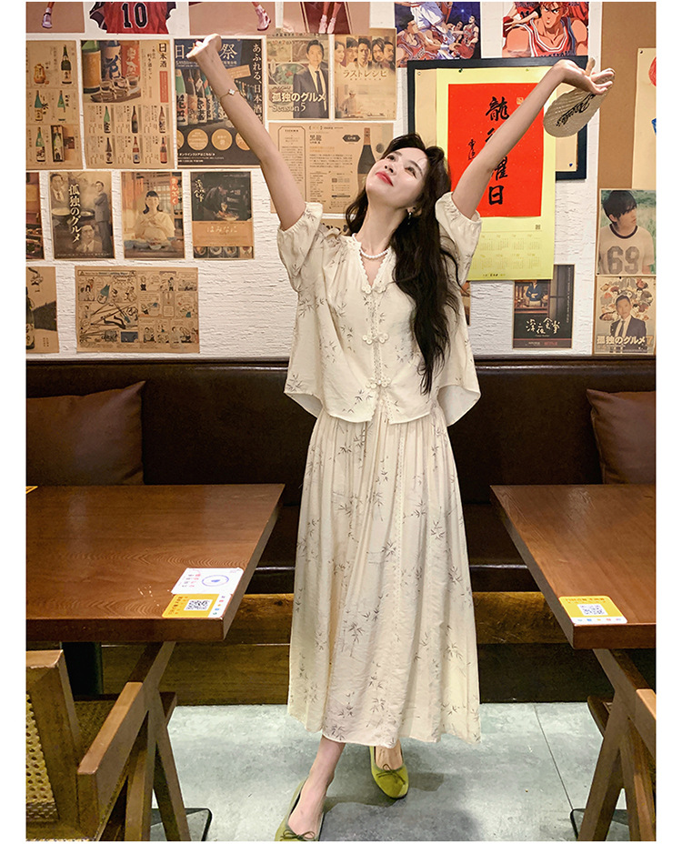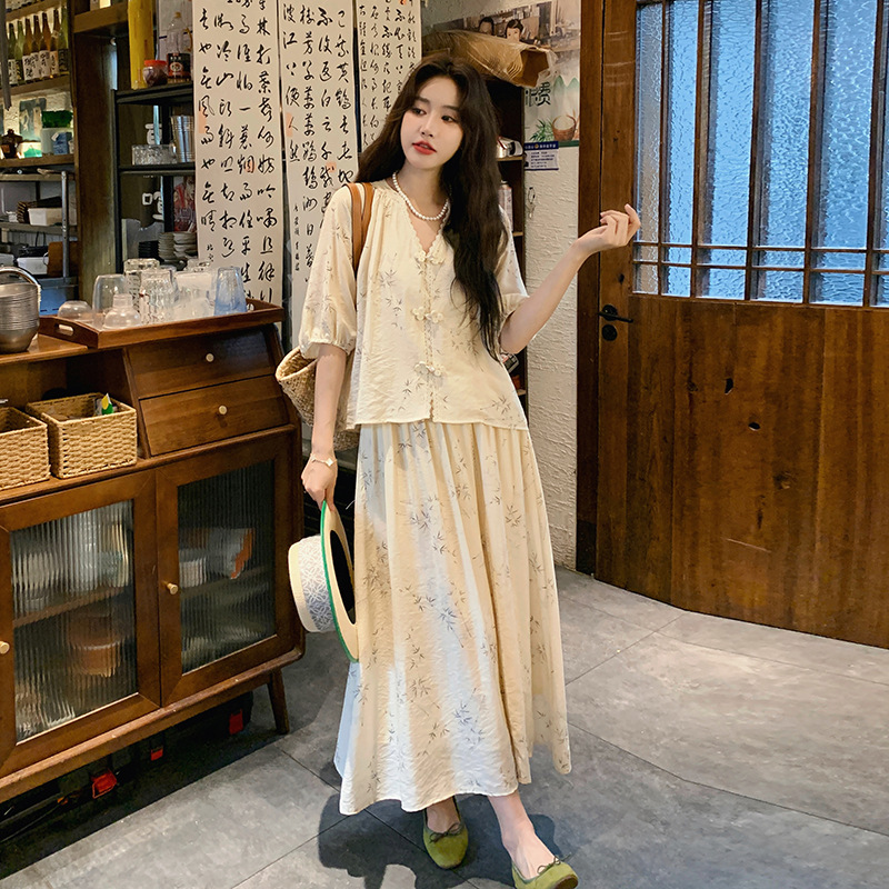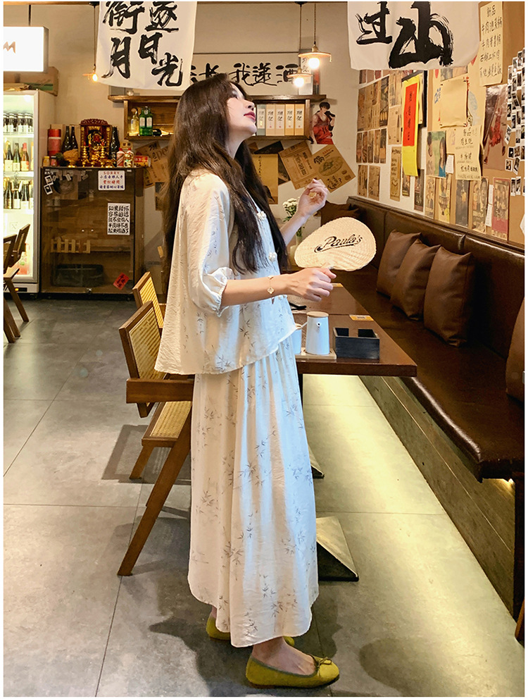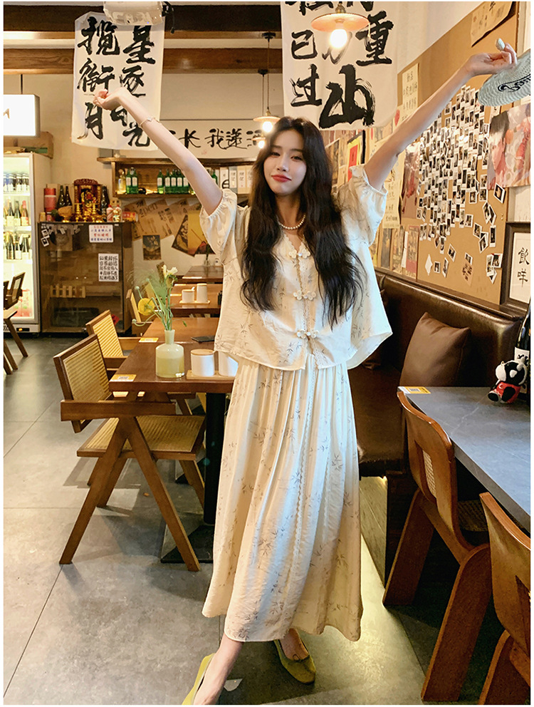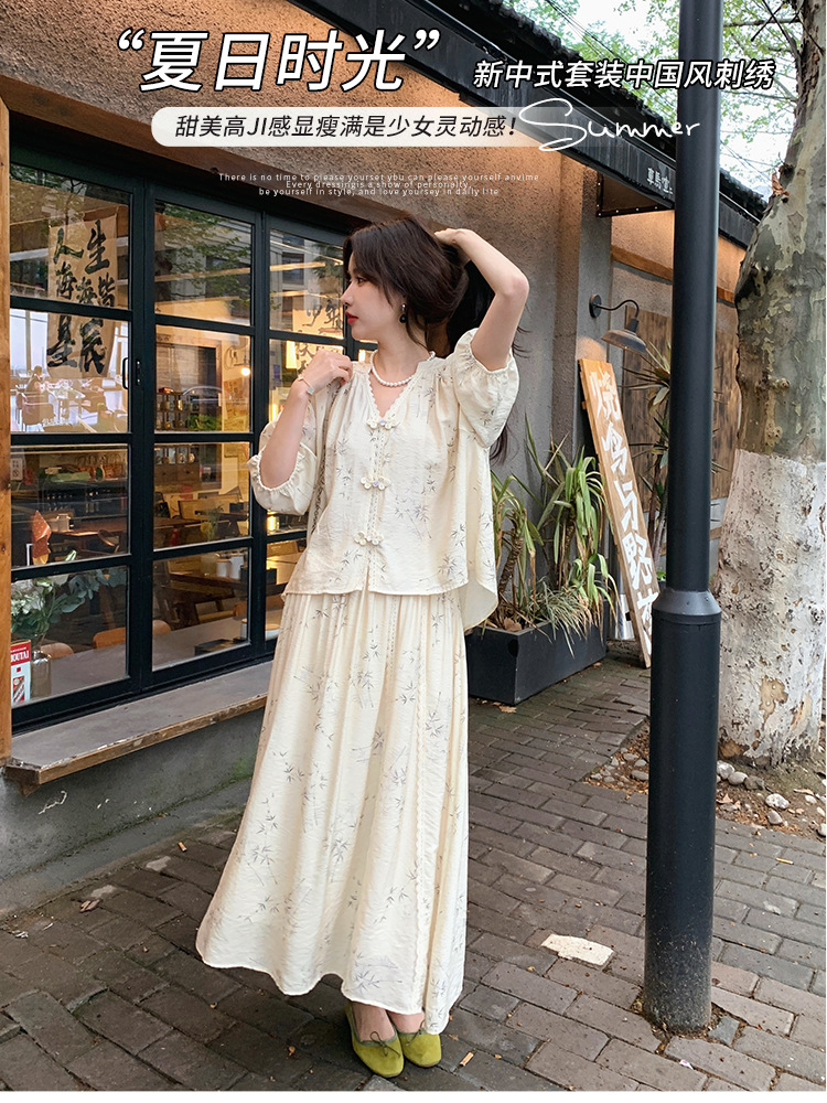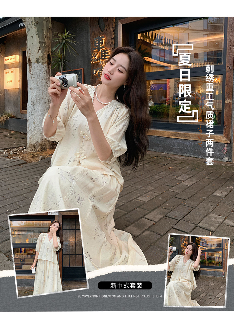 실제 촬영된 새로운 중국식 선(禪) 스타일 여성용 스커트 세트, 2026년 여름 신상품, 편안한 스타일의 자수 스커트 투피스 세트스토어 가기