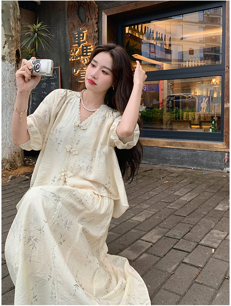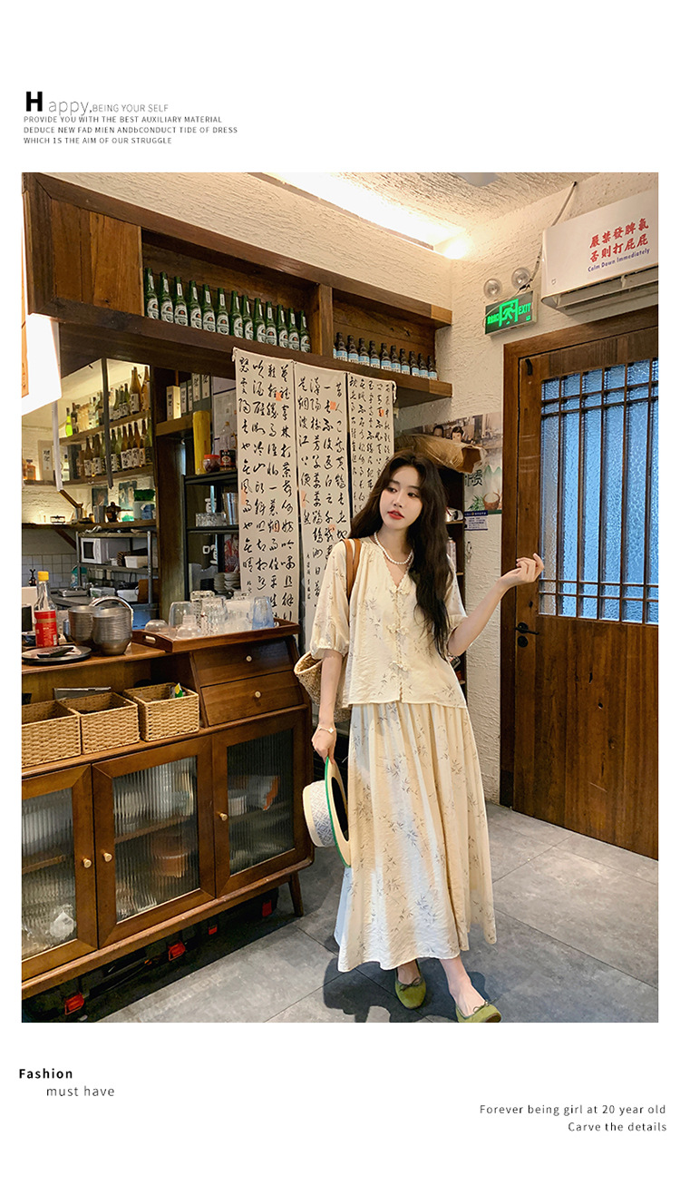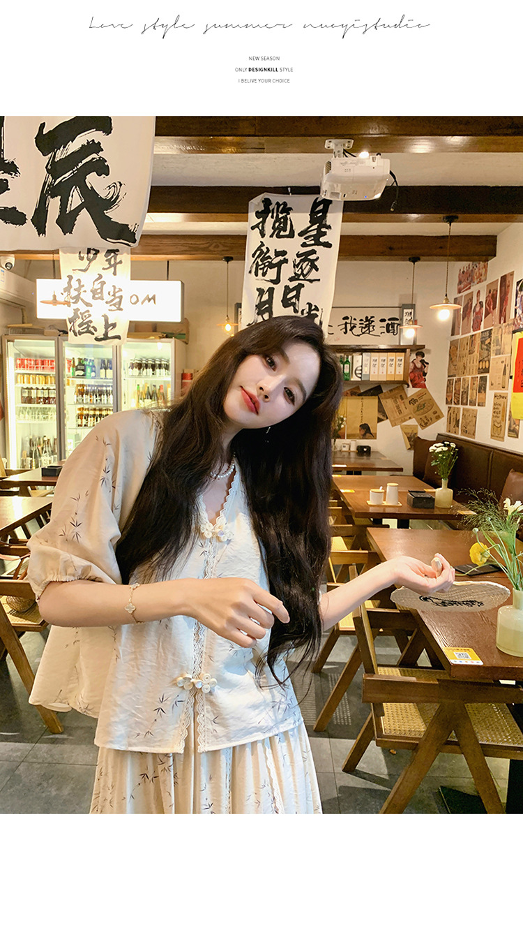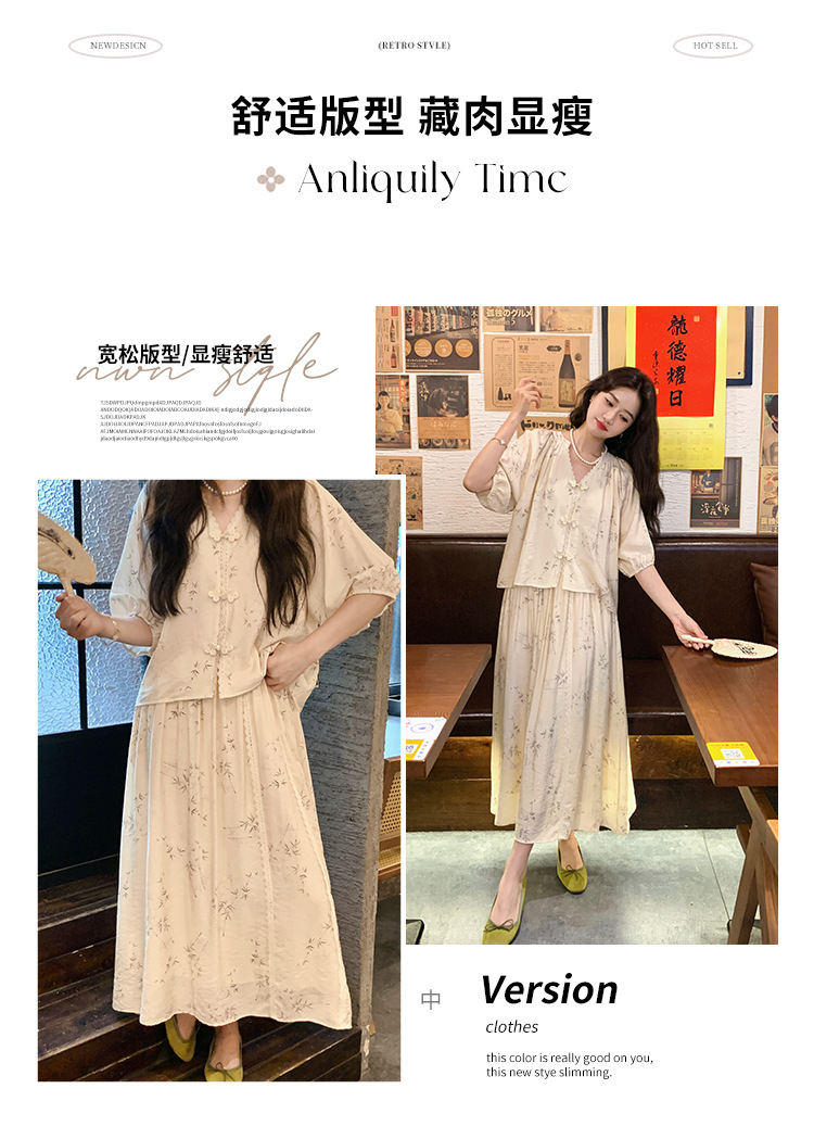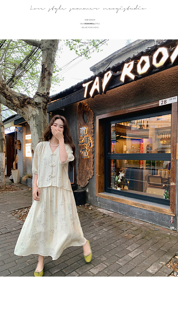 실제 촬영된 새로운 중국식 선(禪) 스타일 여성용 스커트 세트, 2026년 여름 신상품, 편안한 스타일의 자수 스커트 투피스 세트스토어 가기