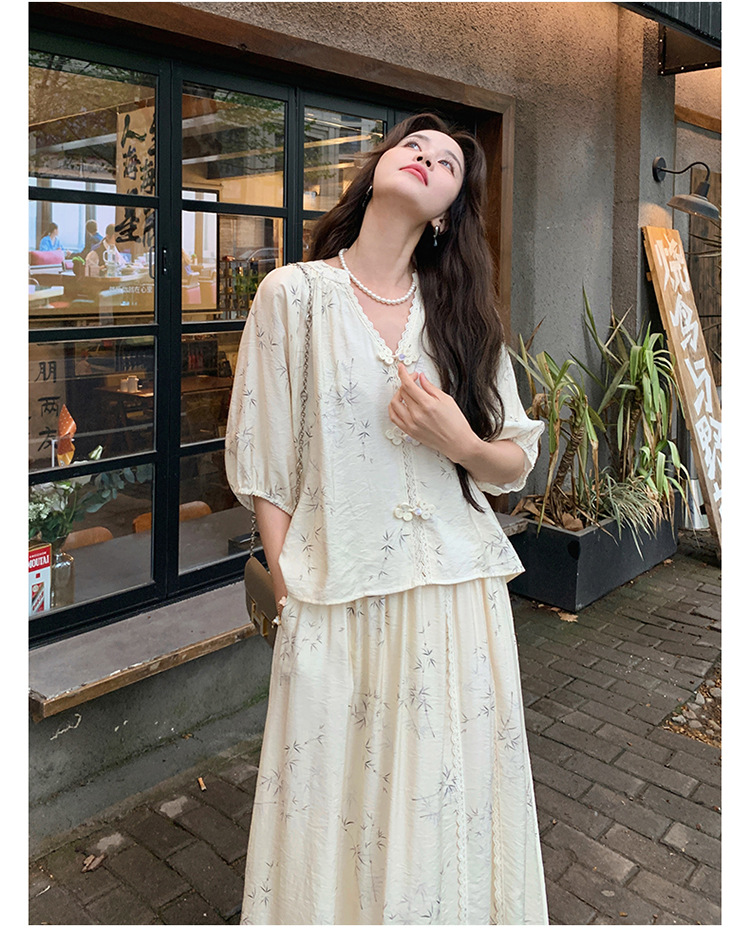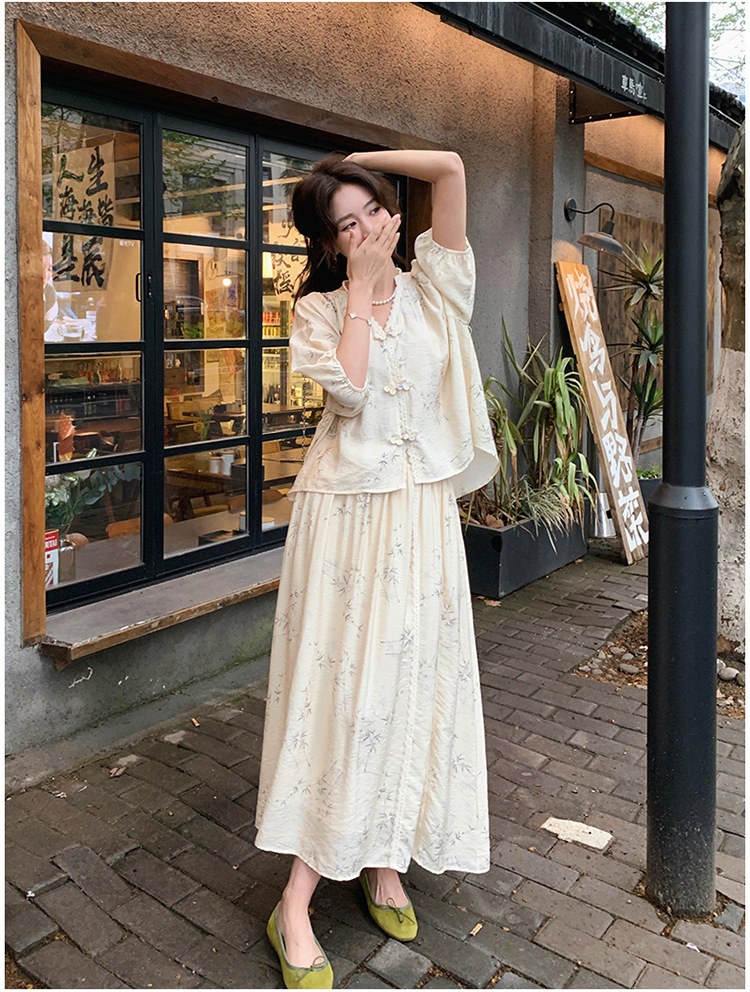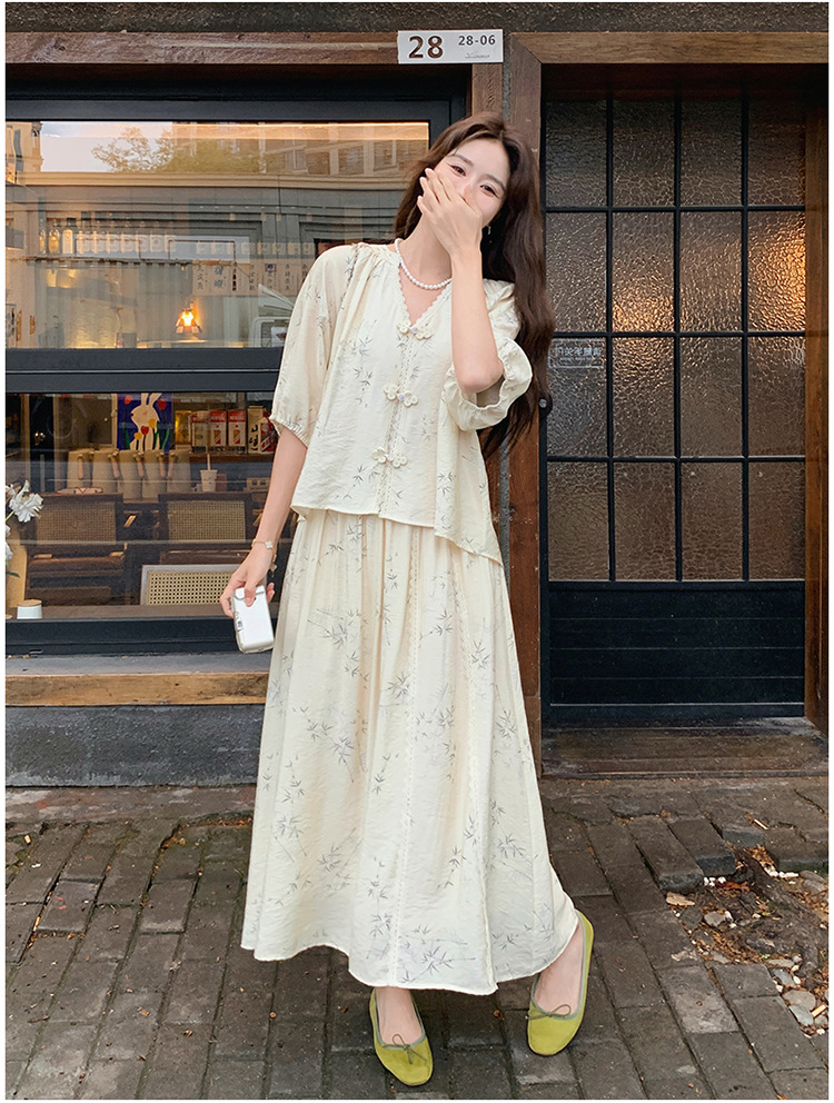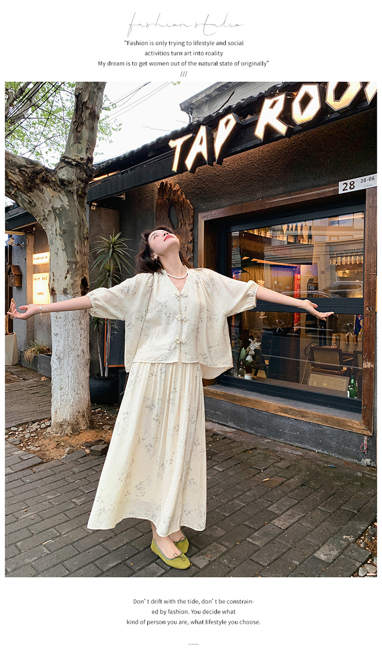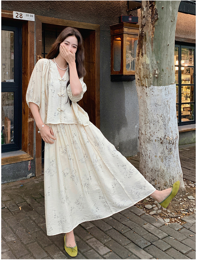 실제 촬영된 새로운 중국식 선(禪) 스타일 여성용 스커트 세트, 2026년 여름 신상품, 편안한 스타일의 자수 스커트 투피스 세트