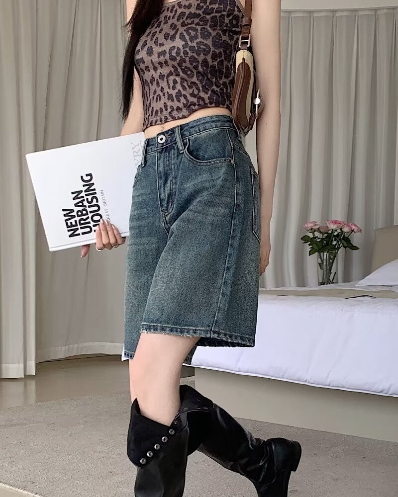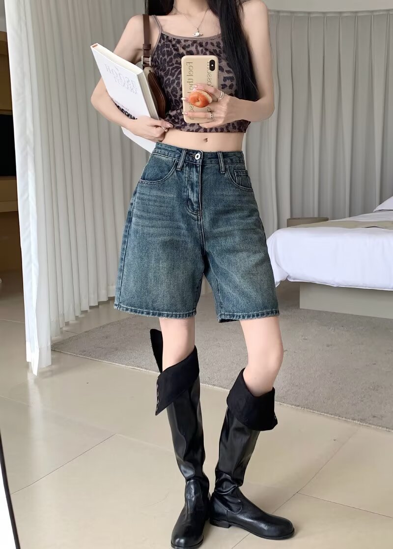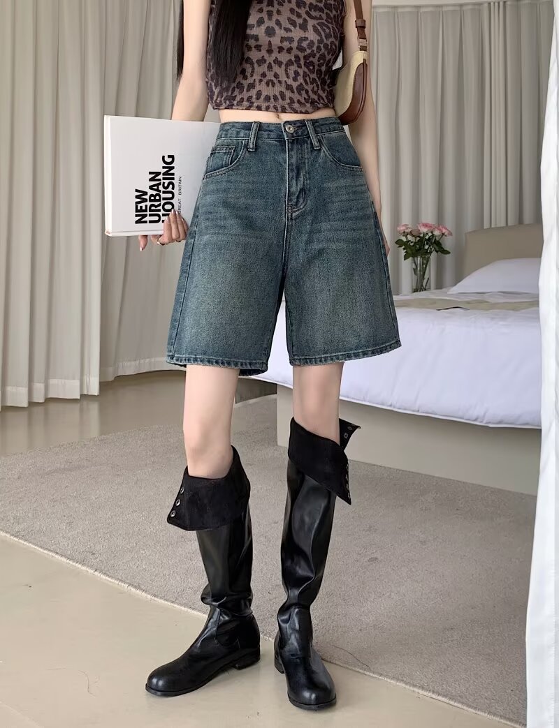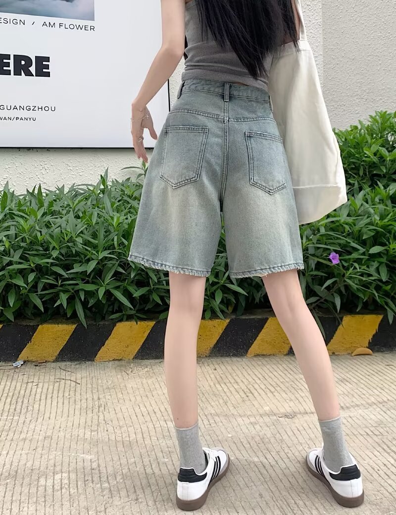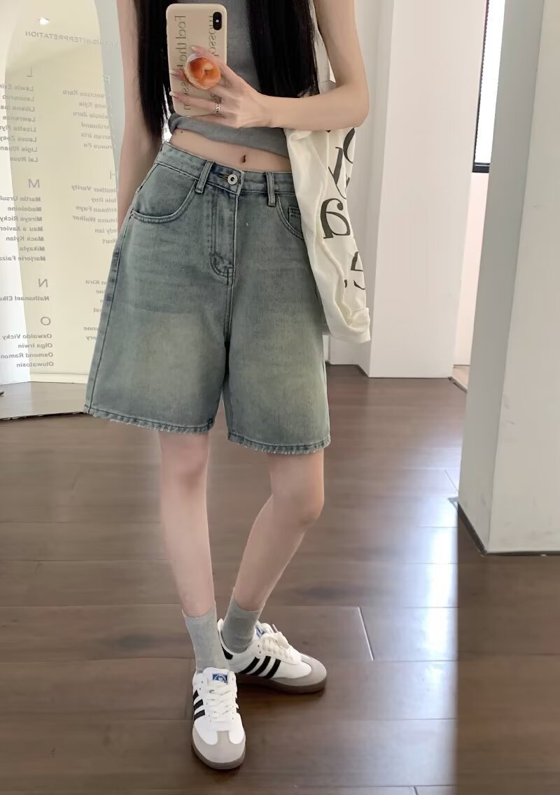 데님 반바지 여성 트렌디 다재다능한 여름 얇은 새로운 하이 웨이스트 복고풍 작은 루즈 스트레이트 슬림 5부 바지스토어 가기