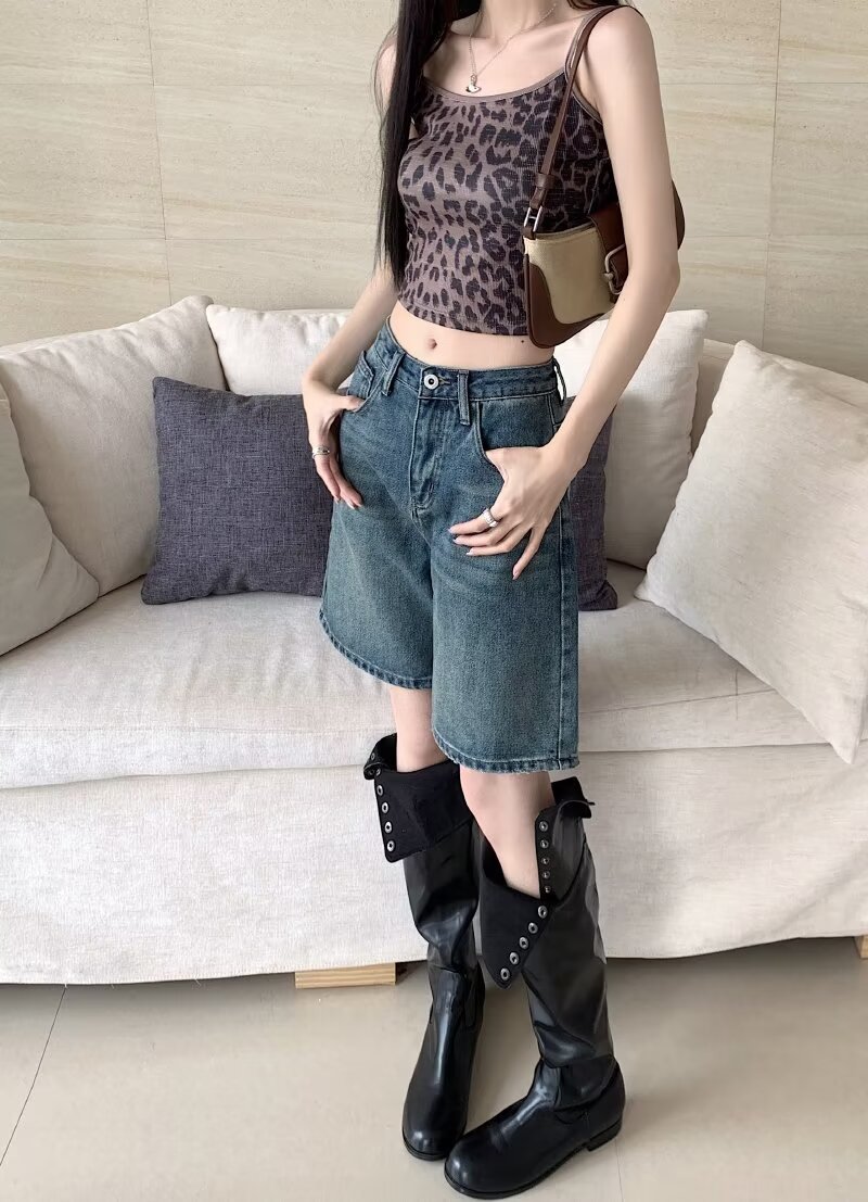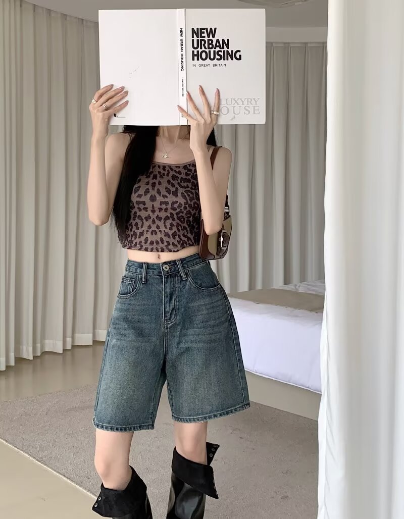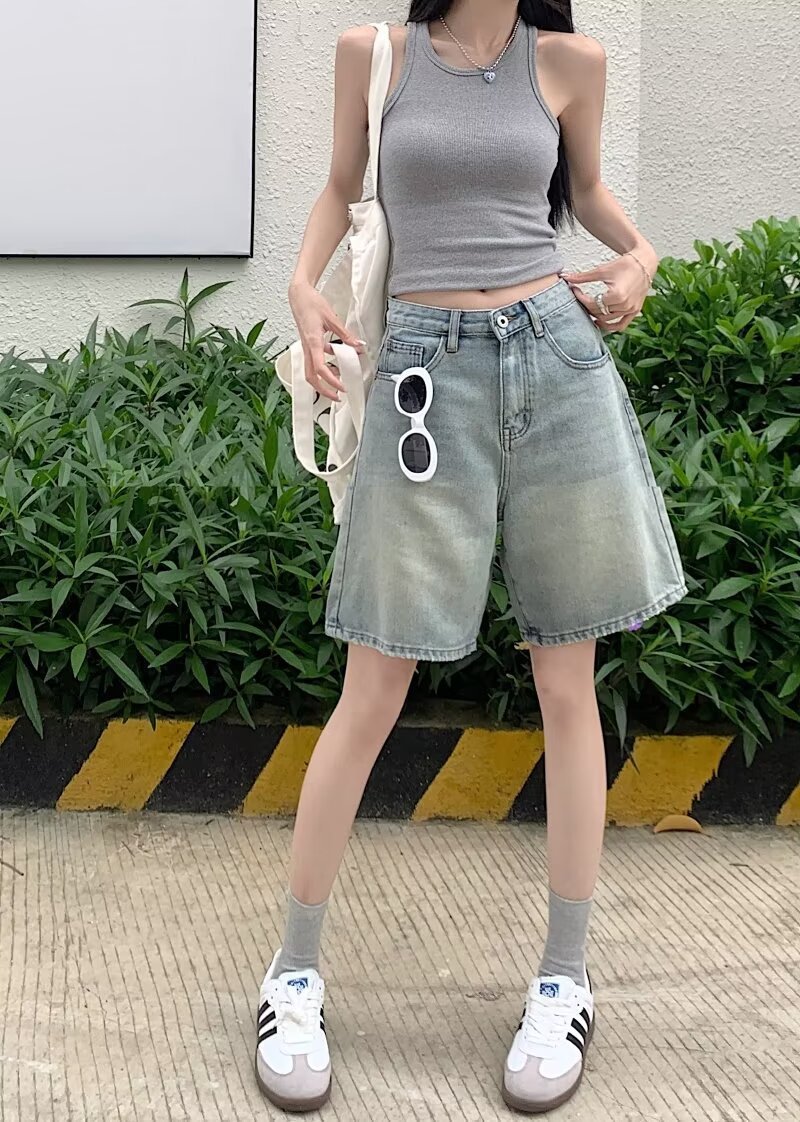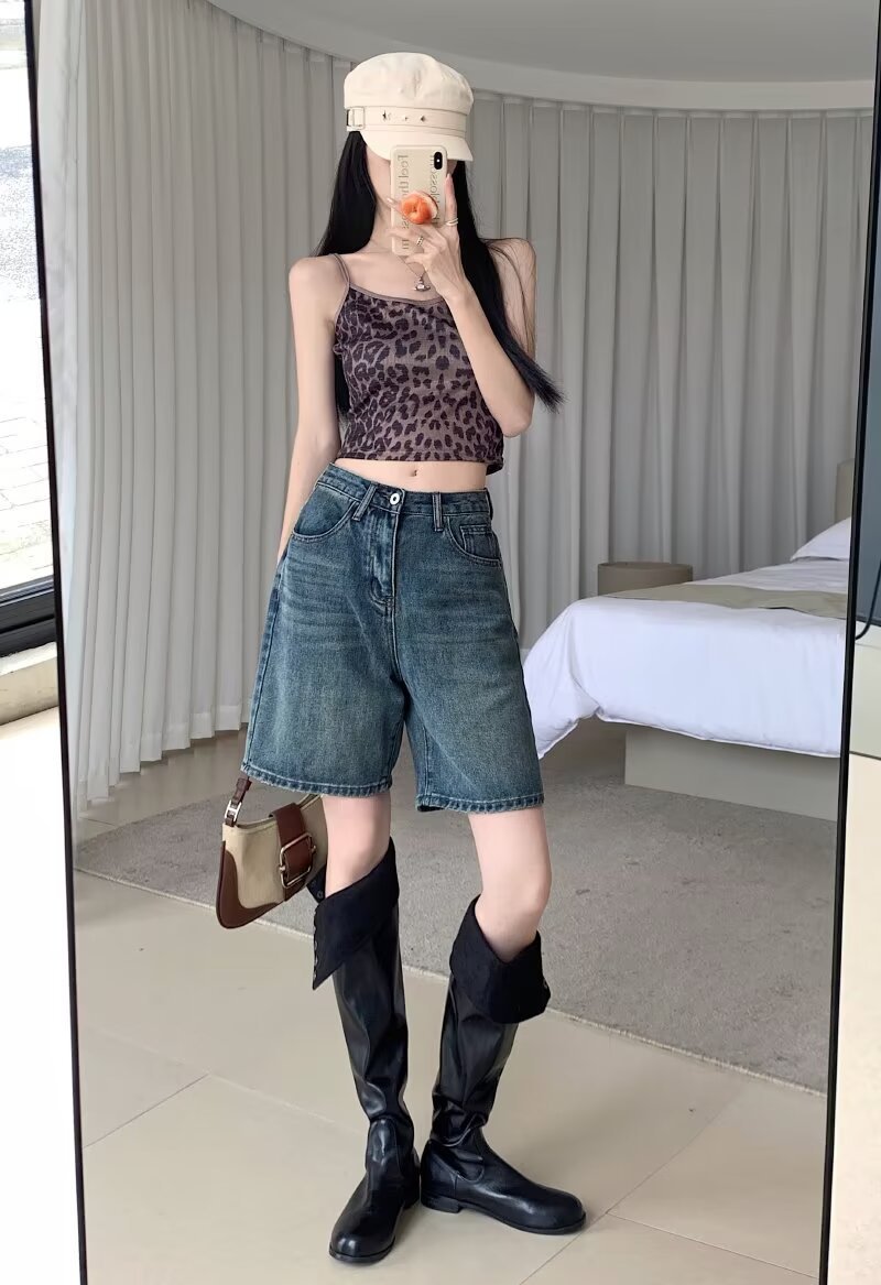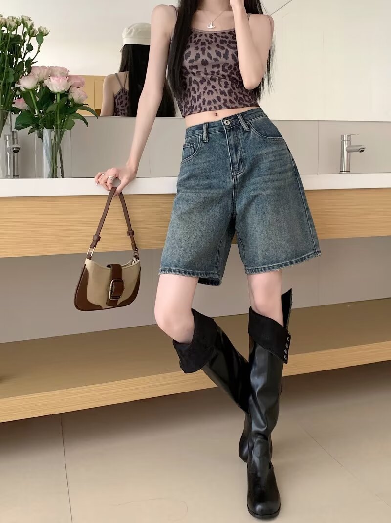 데님 반바지 여성 트렌디 다재다능한 여름 얇은 새로운 하이 웨이스트 복고풍 작은 루즈 스트레이트 슬림 5부 바지스토어 가기