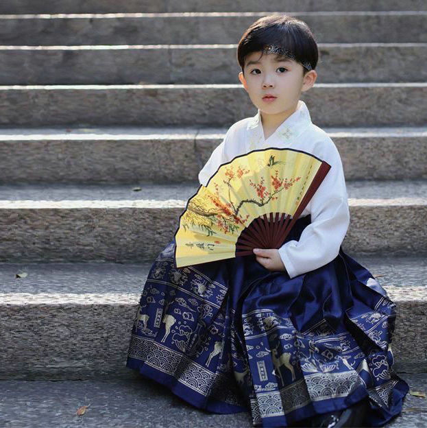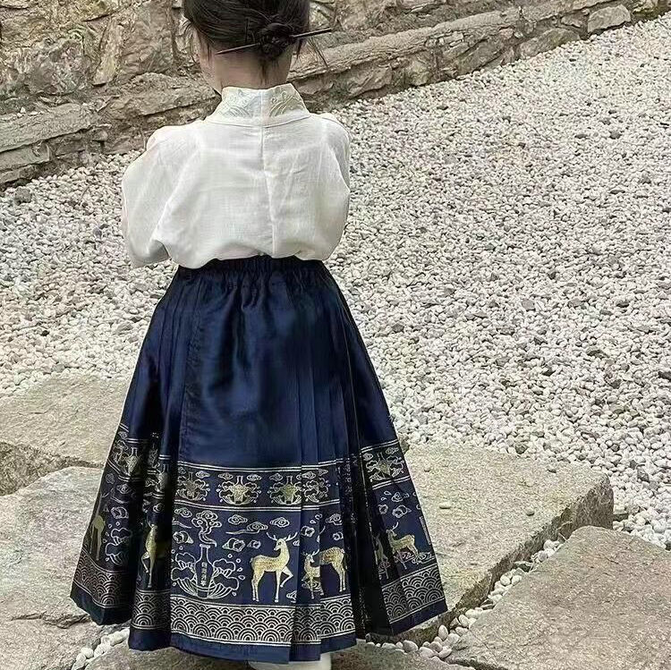 아동복, 소년 소녀 셔츠, 말 얼굴 스커트, 중국 스타일, 새로운 중국 스타일, 개선된 고대 의상, Hanfu 2025 여름 새 스타일스토어 가기