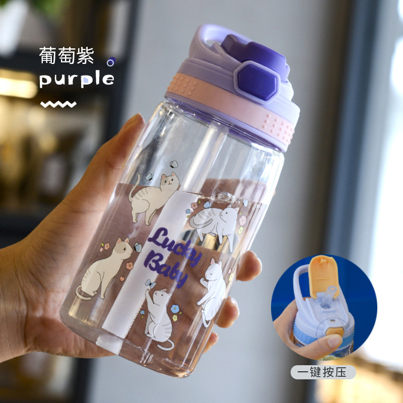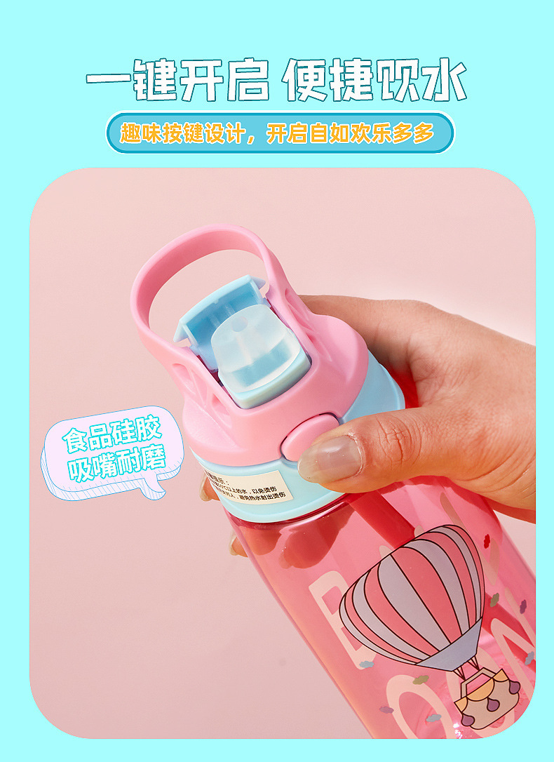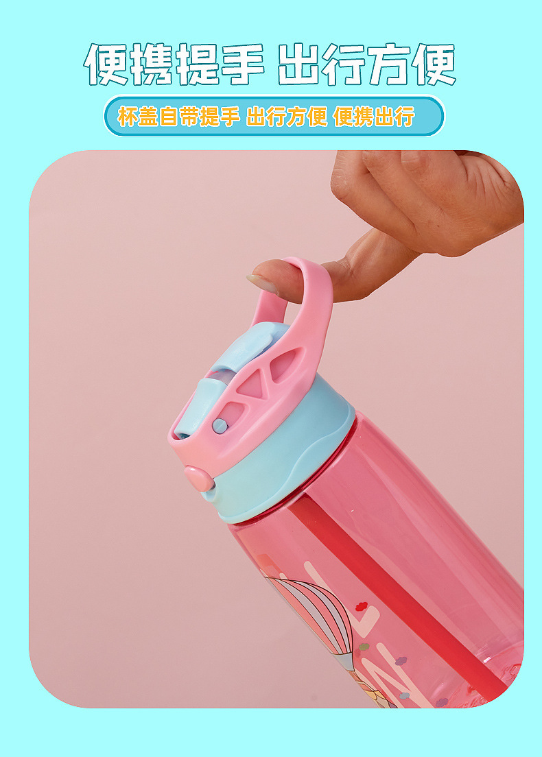 여름 어린이 흡입 튜브 컵 그물 빨간 만화 귀여운 플라스틱 컵 휴대용 학생 스포츠 주전자 도매 로고