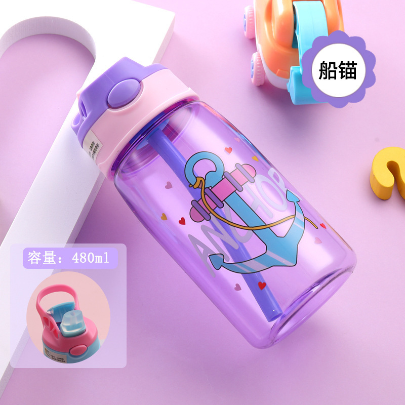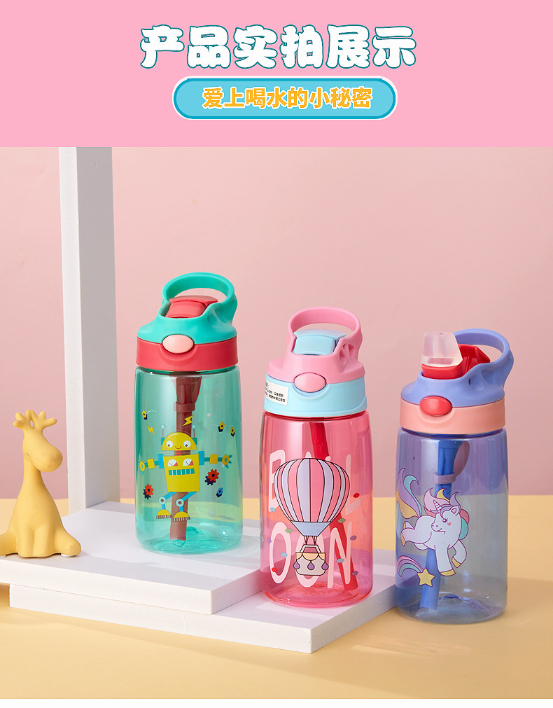 여름 어린이 흡입 튜브 컵 그물 빨간 만화 귀여운 플라스틱 컵 휴대용 학생 스포츠 주전자 도매 로고스토어 가기