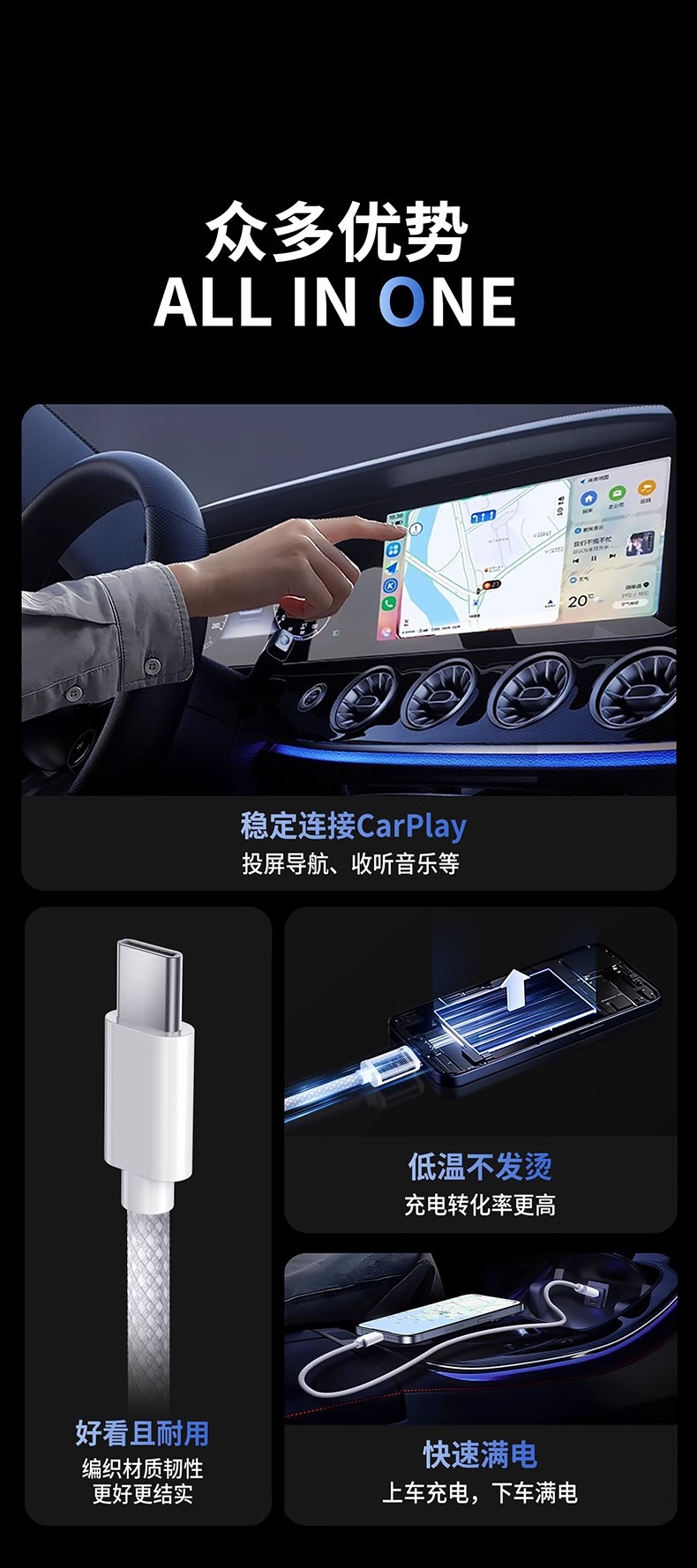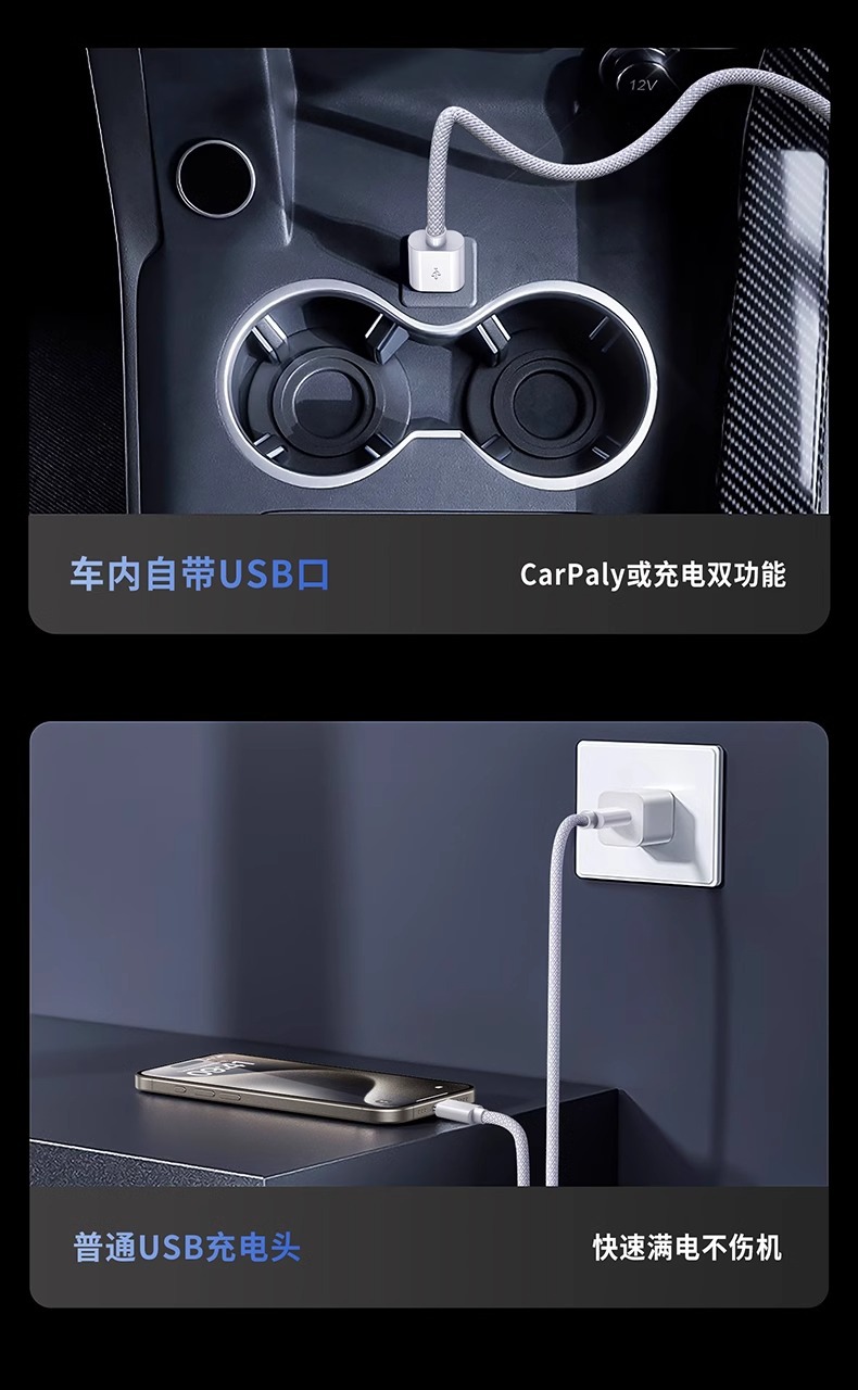 꼰 USB-C 데이터 케이블은 Apple 15 자동차 카플레이 화면 프로젝션 데이터 전송 Aisi Assistant에 적합합니다.