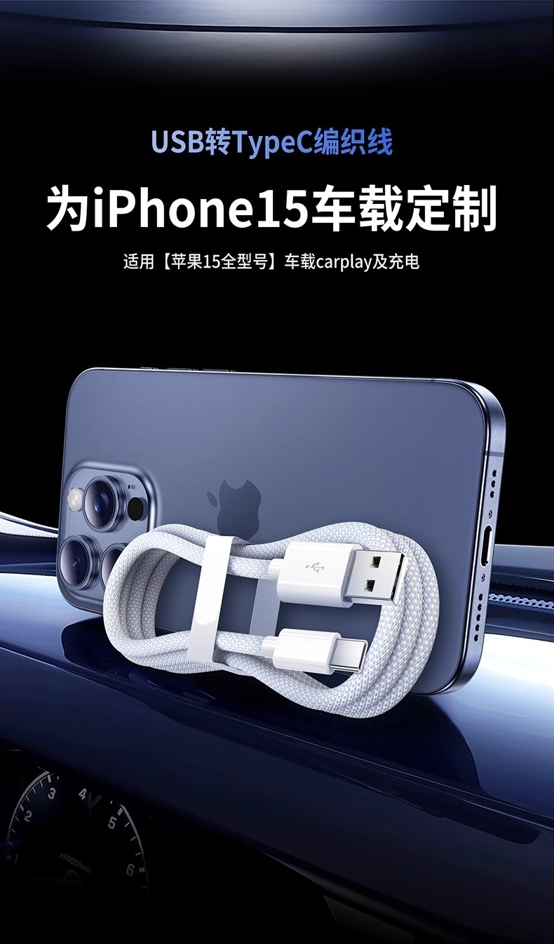 꼰 USB-C 데이터 케이블은 Apple 15 자동차 카플레이 화면 프로젝션 데이터 전송 Aisi Assistant에 적합합니다.스토어 가기