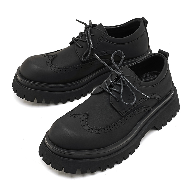 파리 플랫폼 더비 신발 트렌디 한 틈새 디자인 캐주얼 가죽 신발 남성 블랙 영국 스타일 강화 큰 발가락 가죽 신발