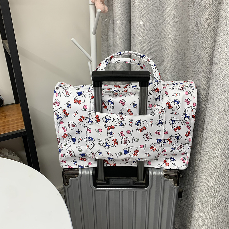헬로 키티 만화 귀여운 대형 가방 어깨 휴대용 피트니스 가방 크로스 바디 짧은 거리 여행 가방 트렌디스토어 가기