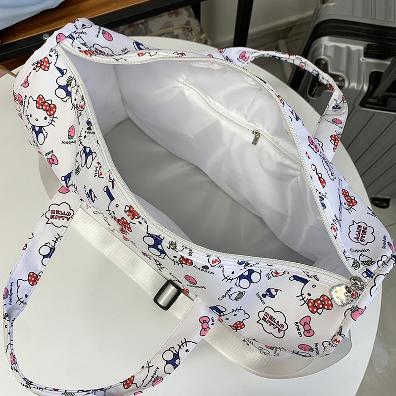 헬로 키티 만화 귀여운 대형 가방 어깨 휴대용 피트니스 가방 크로스 바디 짧은 거리 여행 가방 트렌디