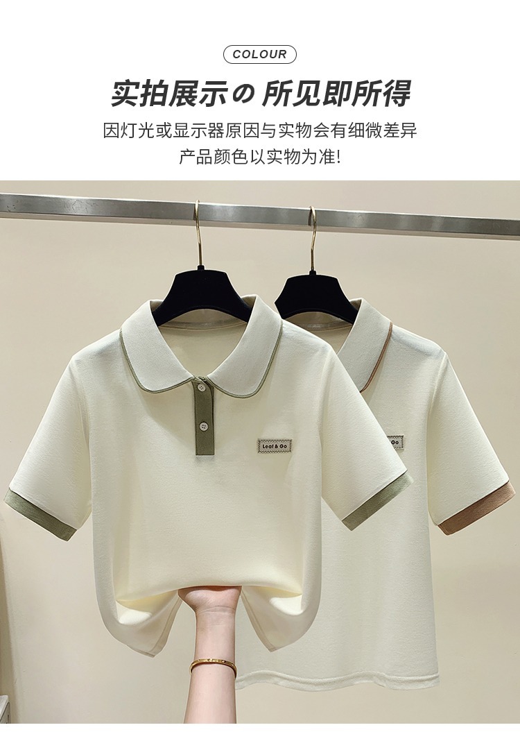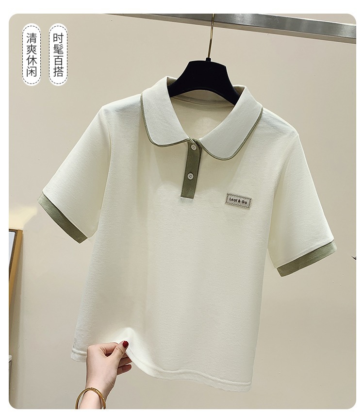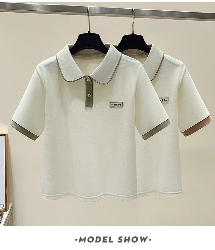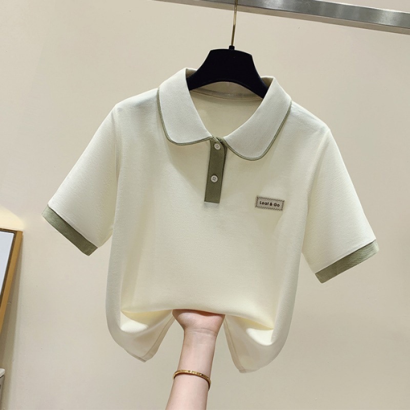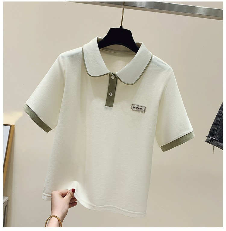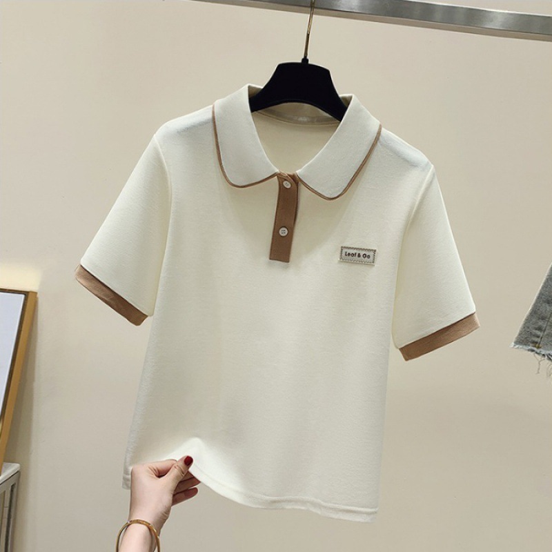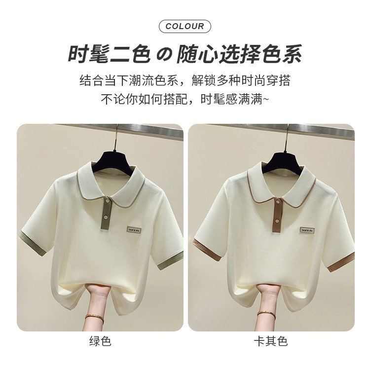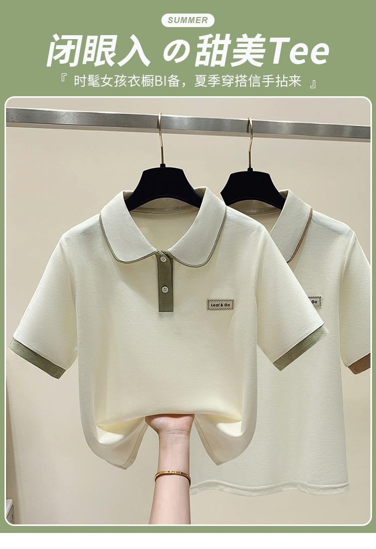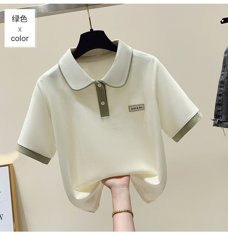 여자 여름 반팔 패션 티셔츠 2024 새로운 한국어 버전 중대형 여학생 대학 스타일 폴로 칼라 탑