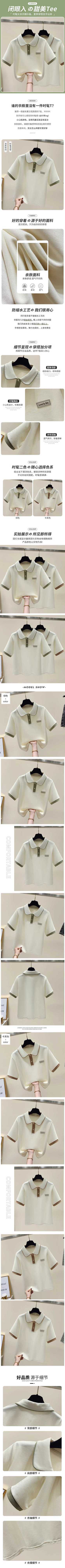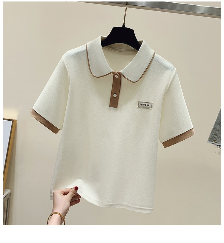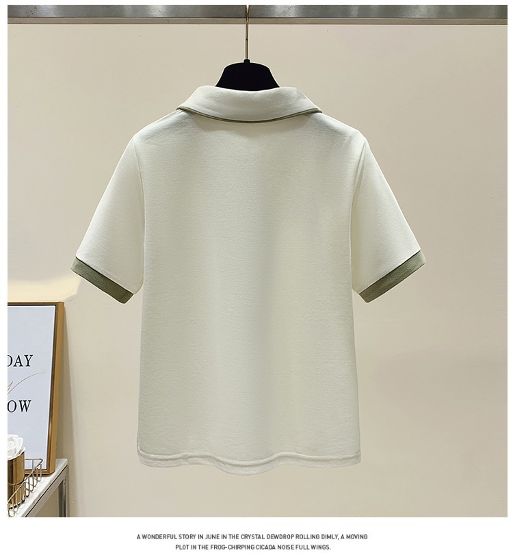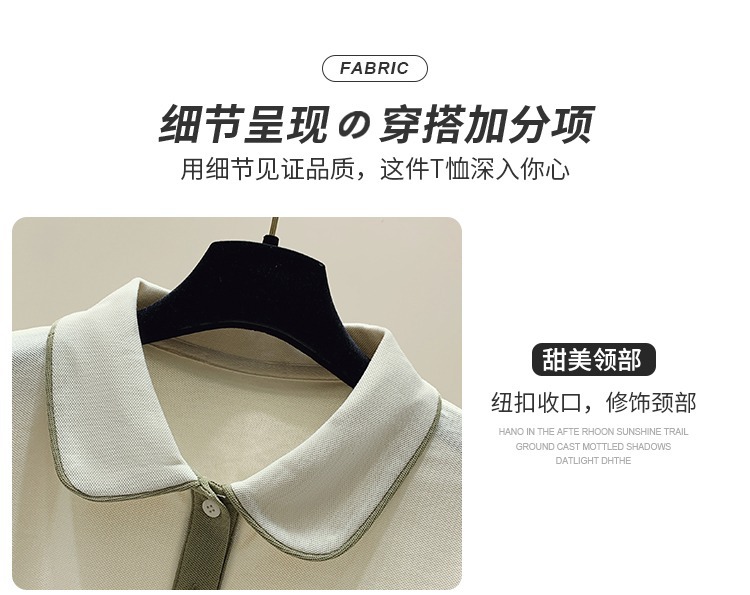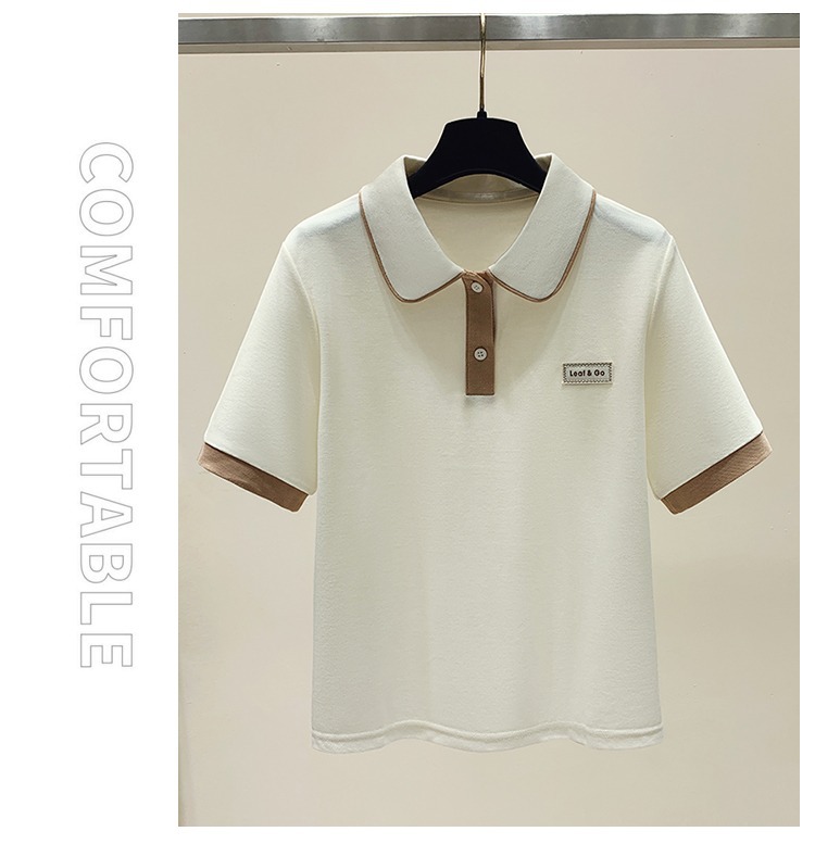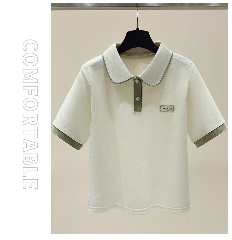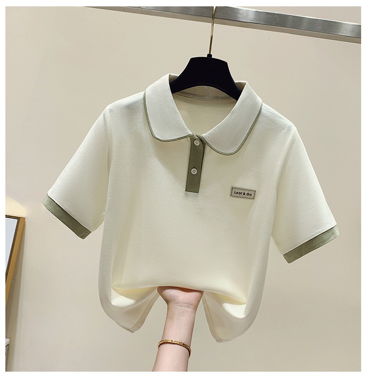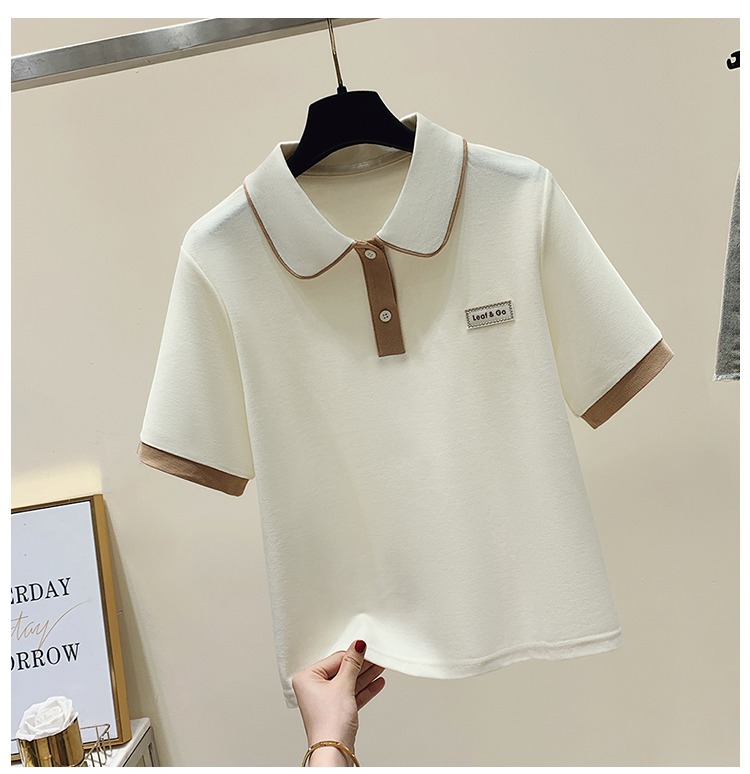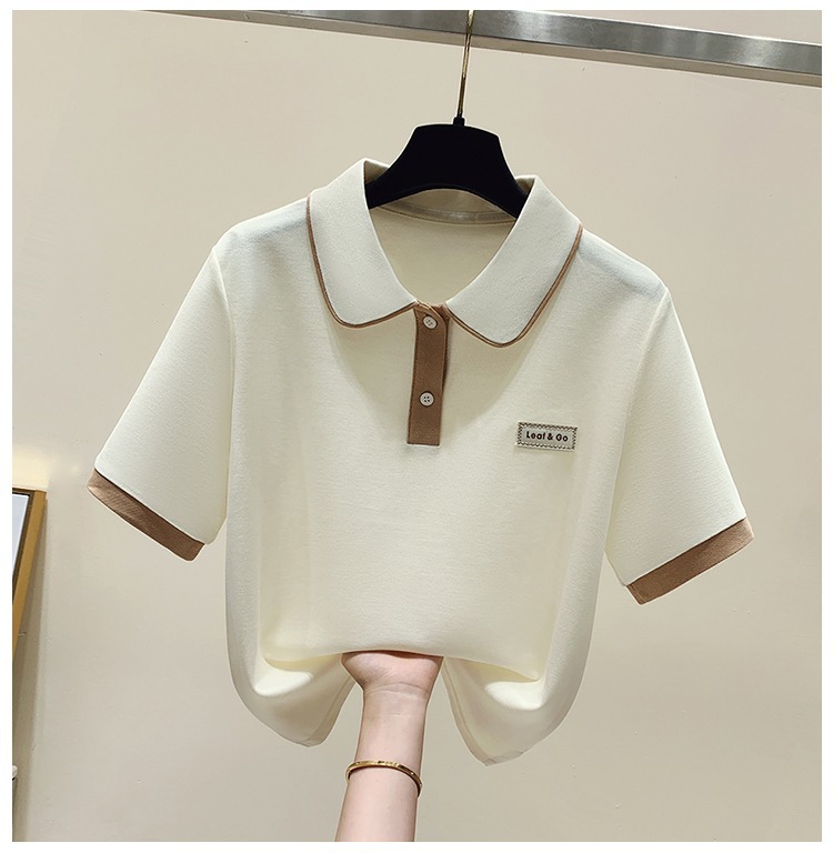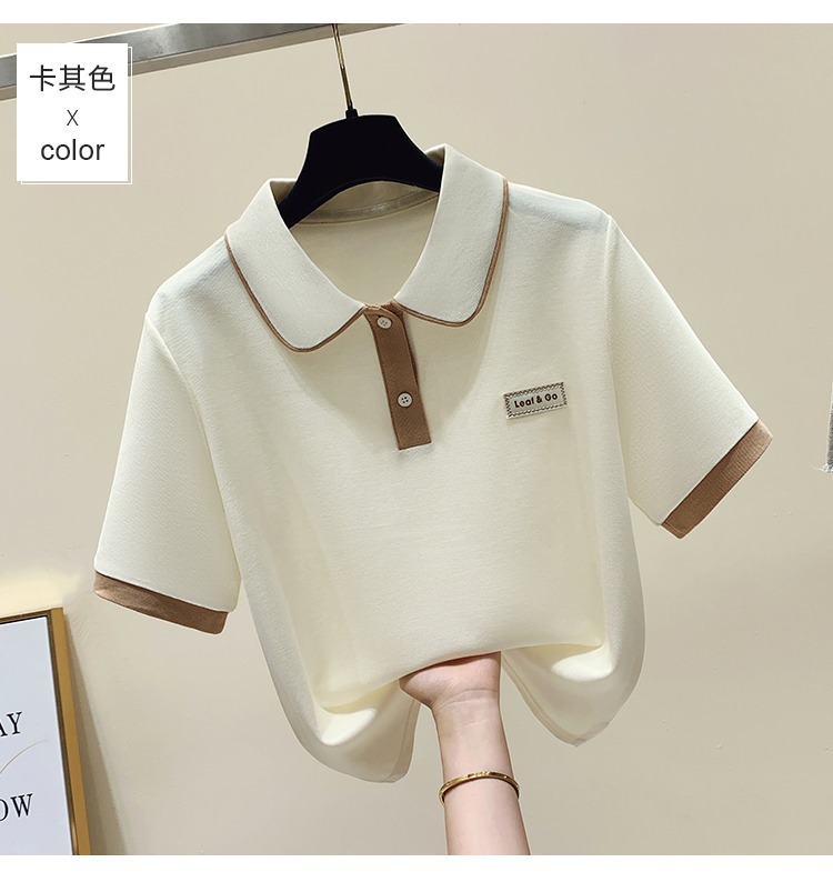 여자 여름 반팔 패션 티셔츠 2024 새로운 한국어 버전 중대형 여학생 대학 스타일 폴로 칼라 탑