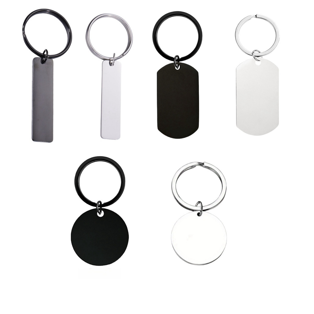 재고 국경 스테인레스 스틸 빈 키 체인 레이저 컬러 인쇄 휴일 선물 레터링 금속 키 체인