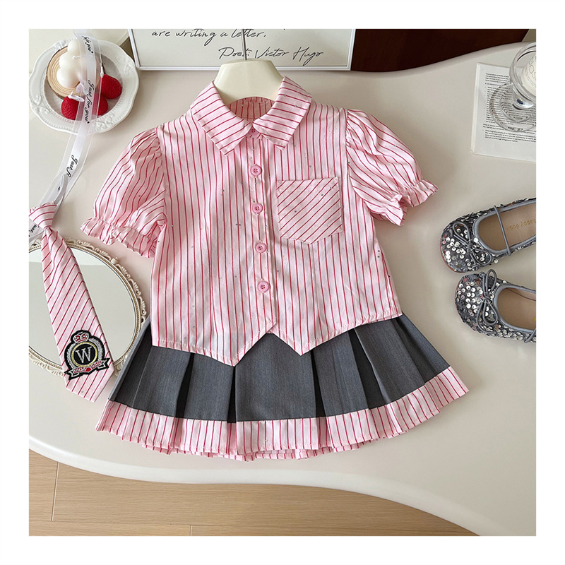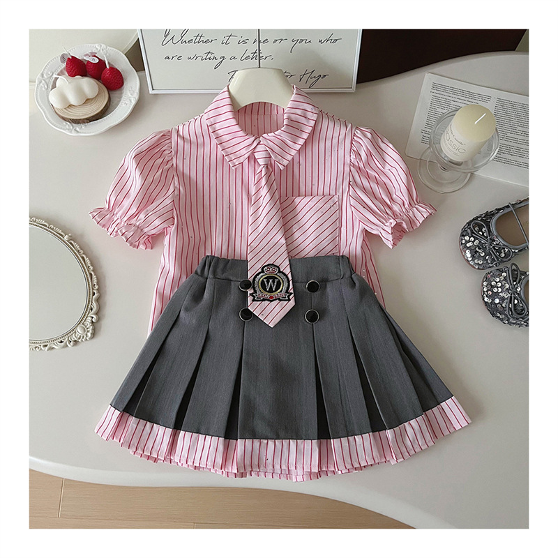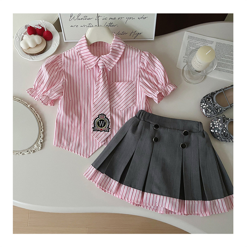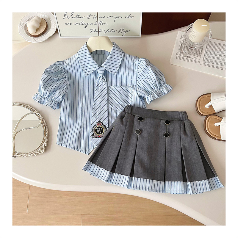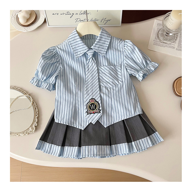 여자 여름 반팔 양복 2025 새로운 어린이 대학 스타일 셔츠 어린 소녀 jk 짧은 치마 여름 투피스 세트스토어 가기