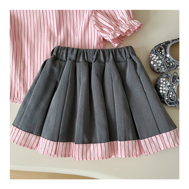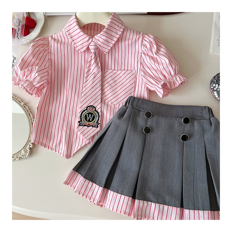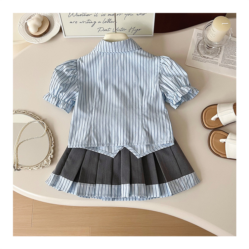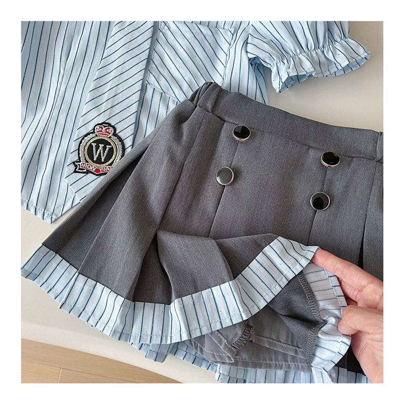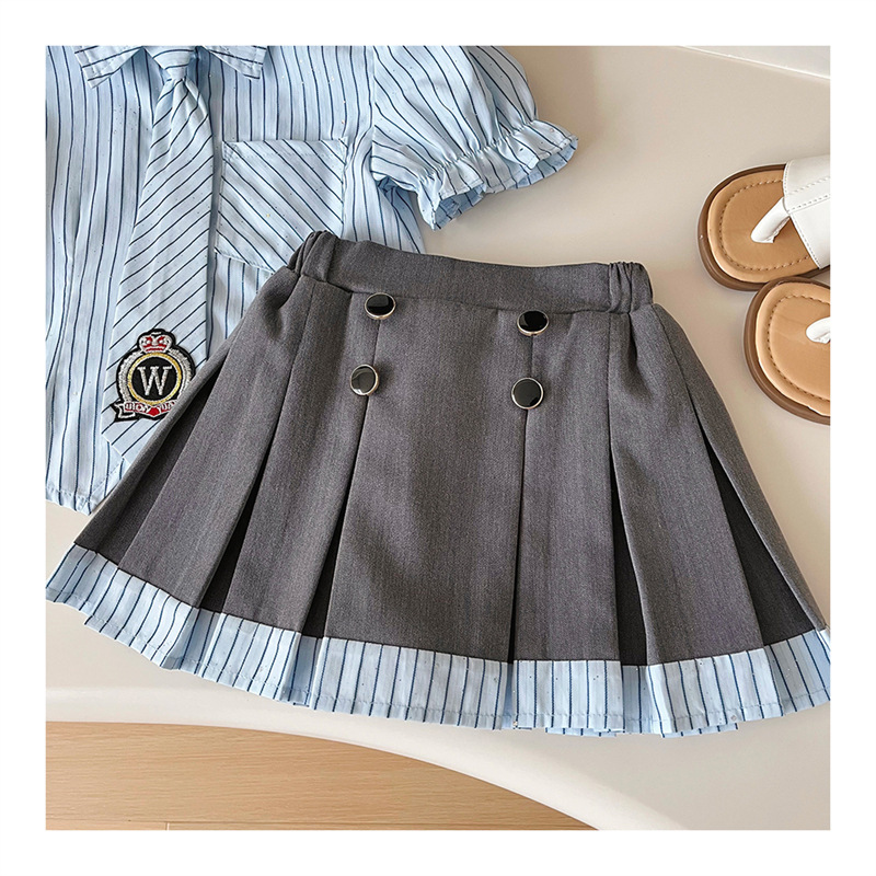 여자 여름 반팔 양복 2025 새로운 어린이 대학 스타일 셔츠 어린 소녀 jk 짧은 치마 여름 투피스 세트스토어 가기