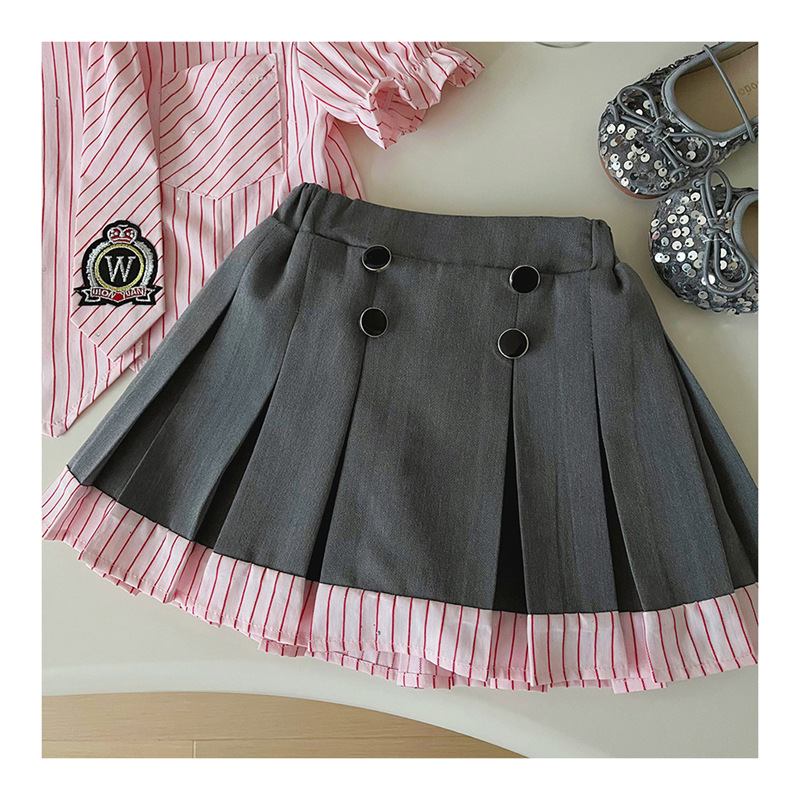 여자 여름 반팔 양복 2025 새로운 어린이 대학 스타일 셔츠 어린 소녀 jk 짧은 치마 여름 투피스 세트