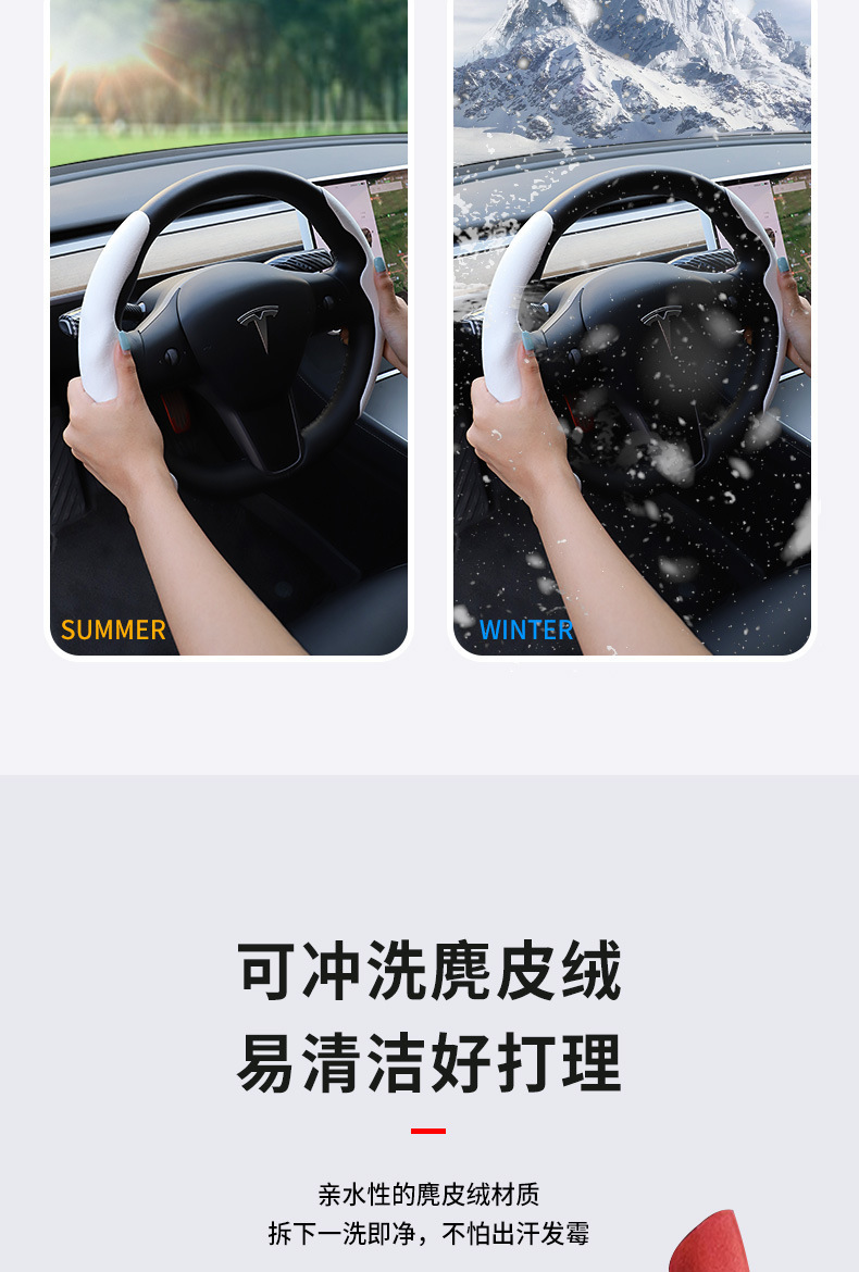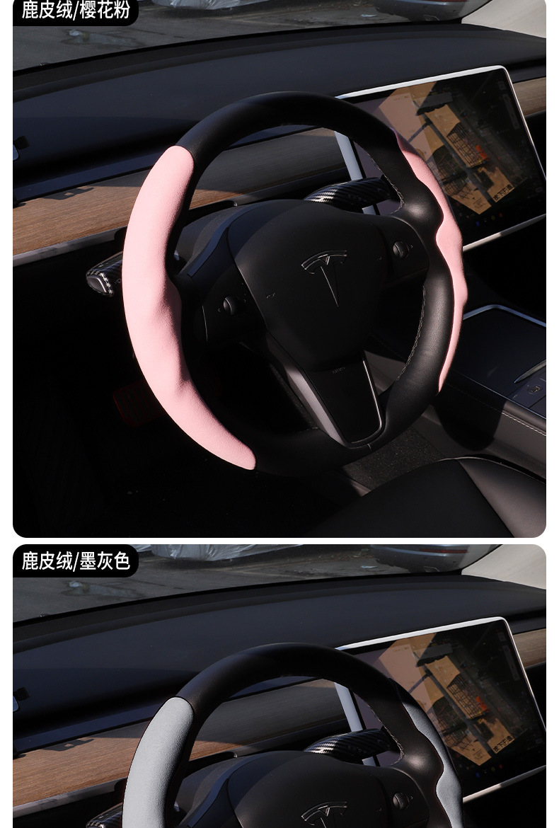 테슬라 Model3/Y 스티어링 휠 커버 사계절 보편적 인 장식 초박형 스티어링 휠 데어스킨 벨벳 핸들 커버에 적합스토어 가기