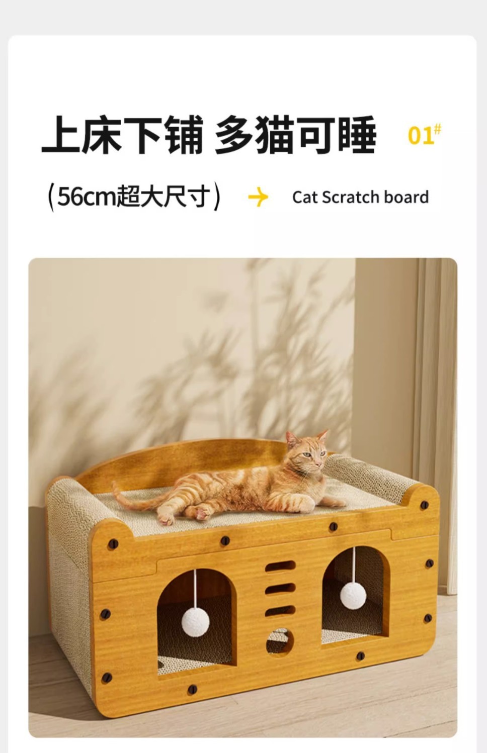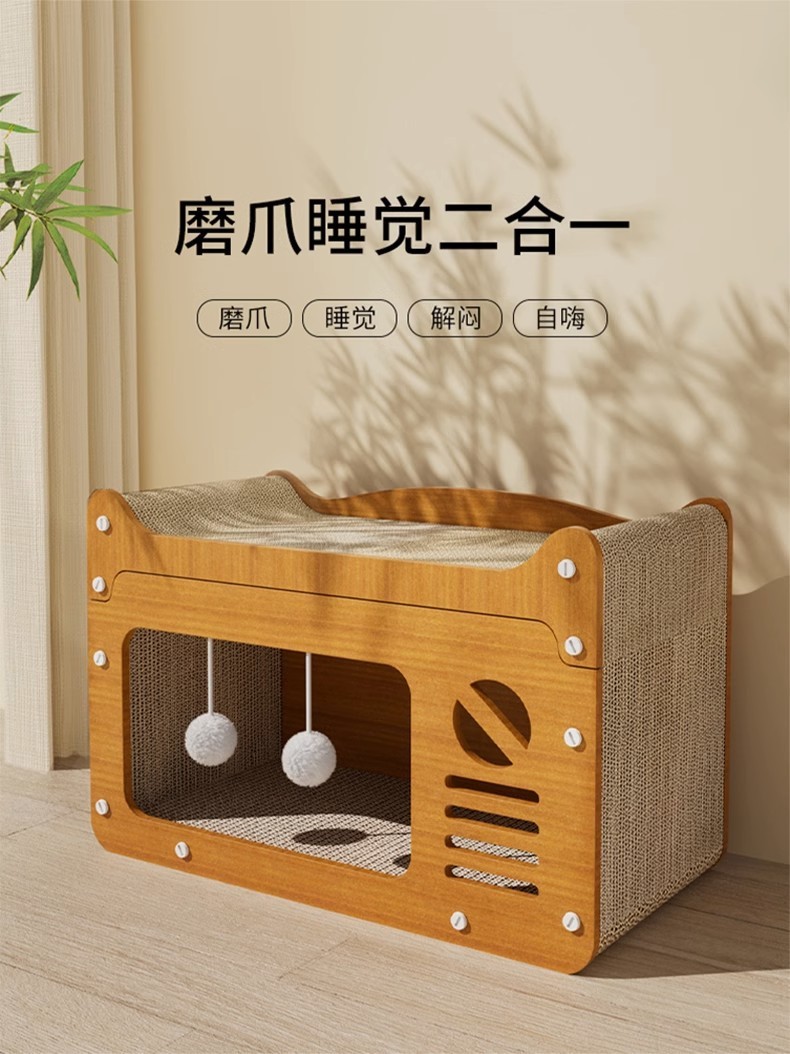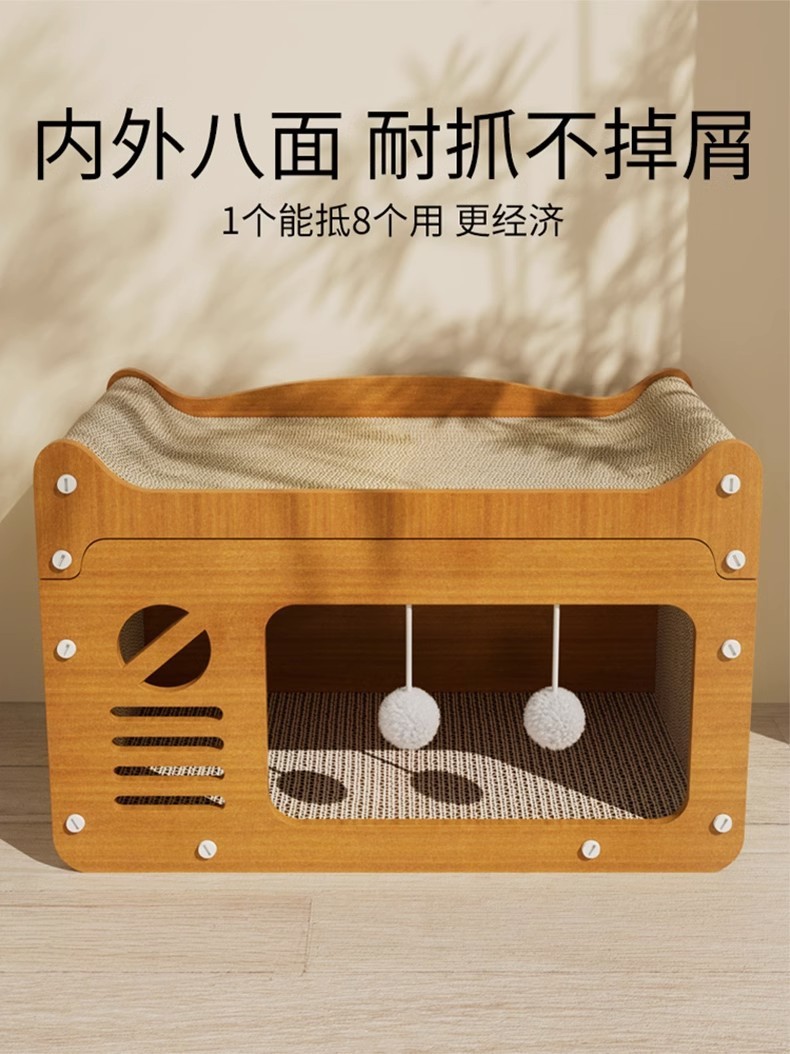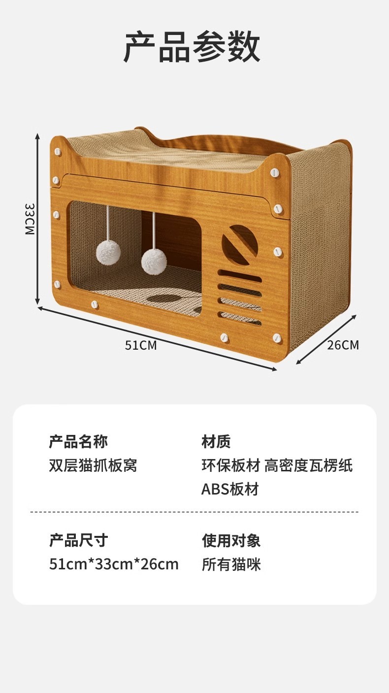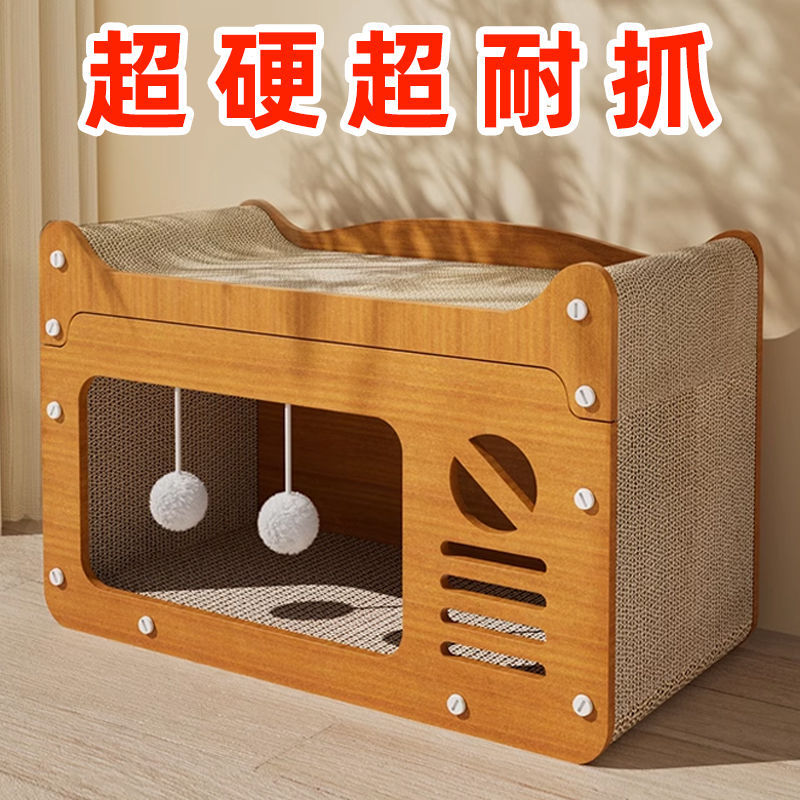 고양이 집 고양이 스크래치 보드 고양이 둥지 통합 비 경멸적인 더블 레이어 상위 및 하단 벙크 사계절 유니버설 골판지 고양이 집 아마존
