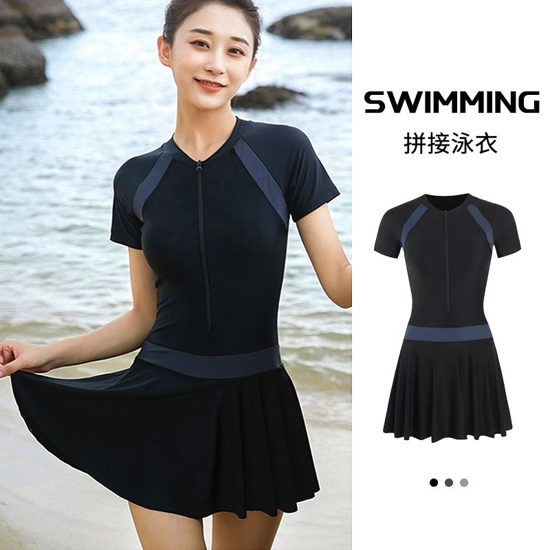 여성용 속건성 대비색 수영복, 온천 스커트 스타일, 휴가용 원피스 수영복, 노출 방지, 슬리밍, 보수적인 학생 스타일스토어 가기