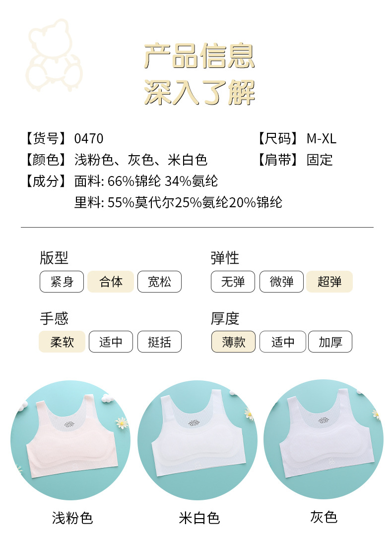 1 단계 여아 발달 기간 무인 속옷 초등 및 중등 학교 학생 반 범프 십대 브래지어 어린이 통기성 작은 조끼스토어 가기