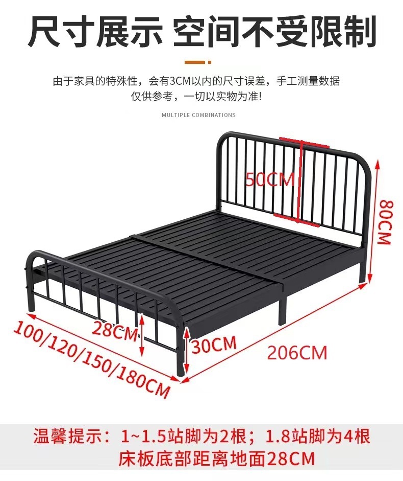 아이언 침대 1.5 m 침대 가정용 더블 침대 1.8x2 m 임대 철 프레임 침대 1.2/1 m 학생 침대 도매