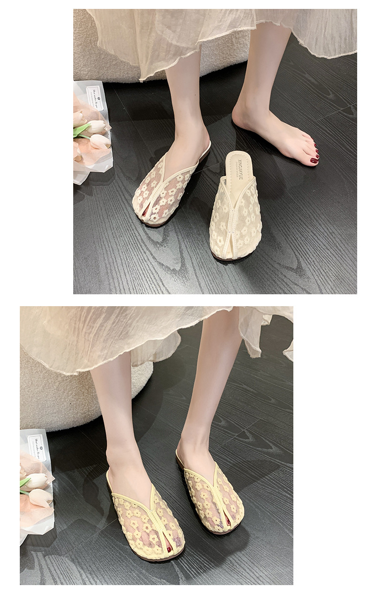 메쉬 통기성 Baotou 슬리퍼 여성용 여름 의상 2023 새로운 소프트 하단 캐주얼 하프 슬리퍼 게으른 스커트 샌들스토어 가기