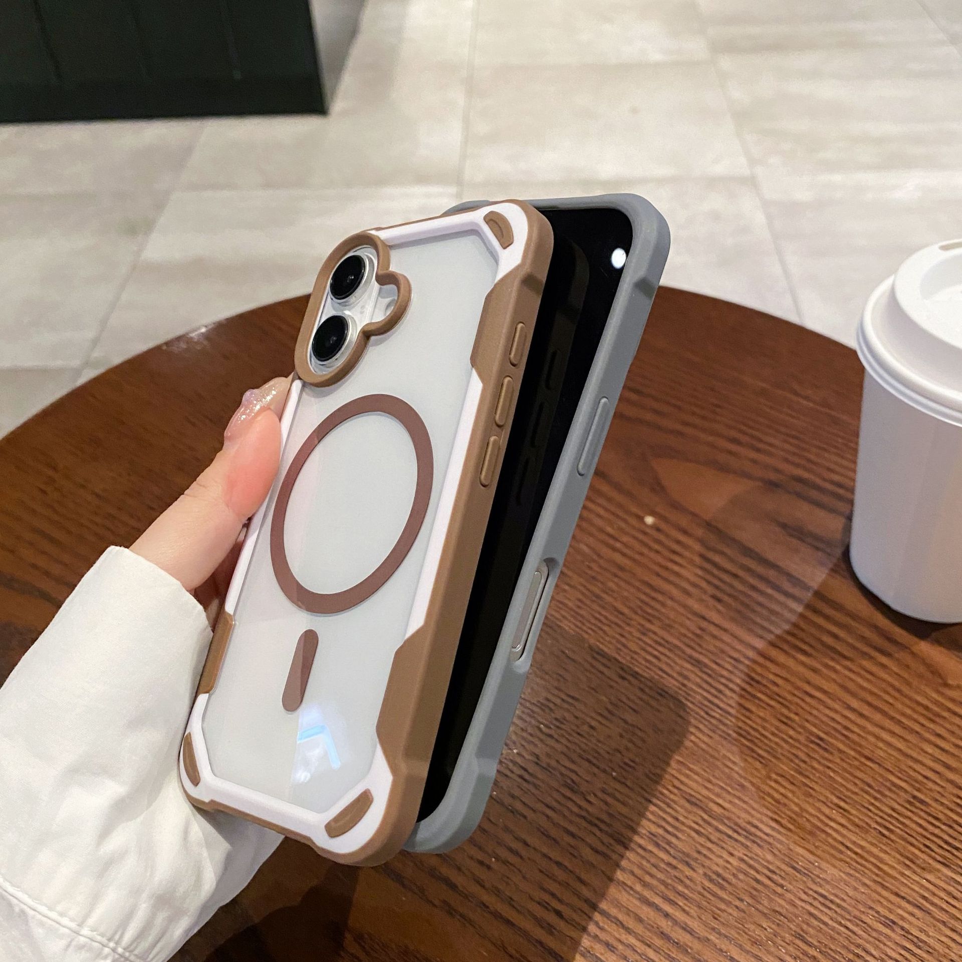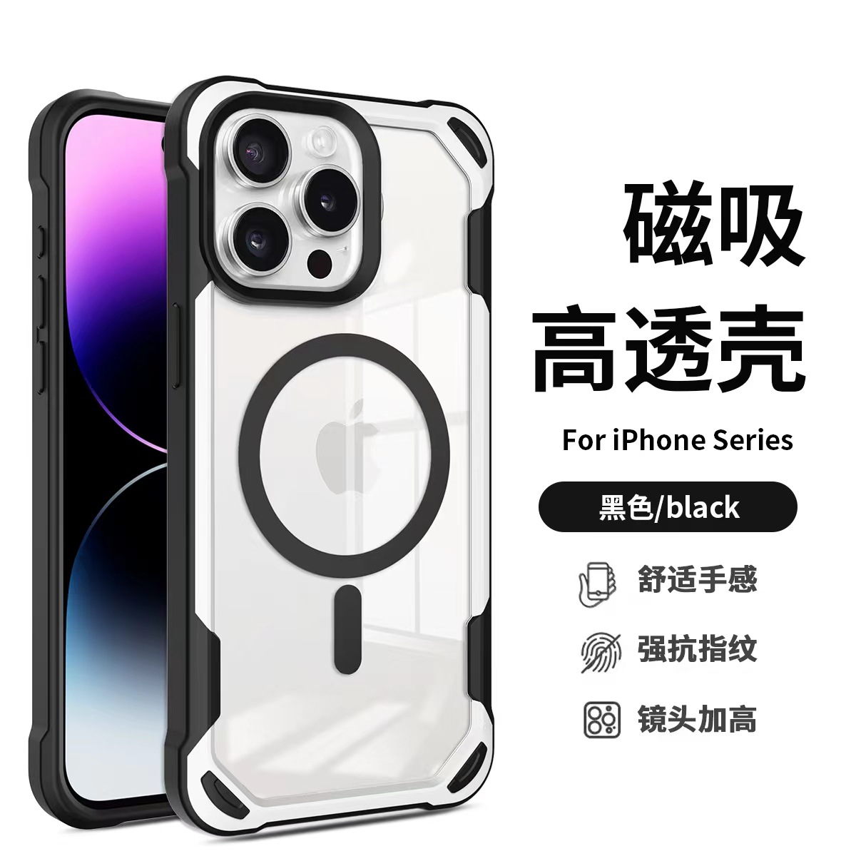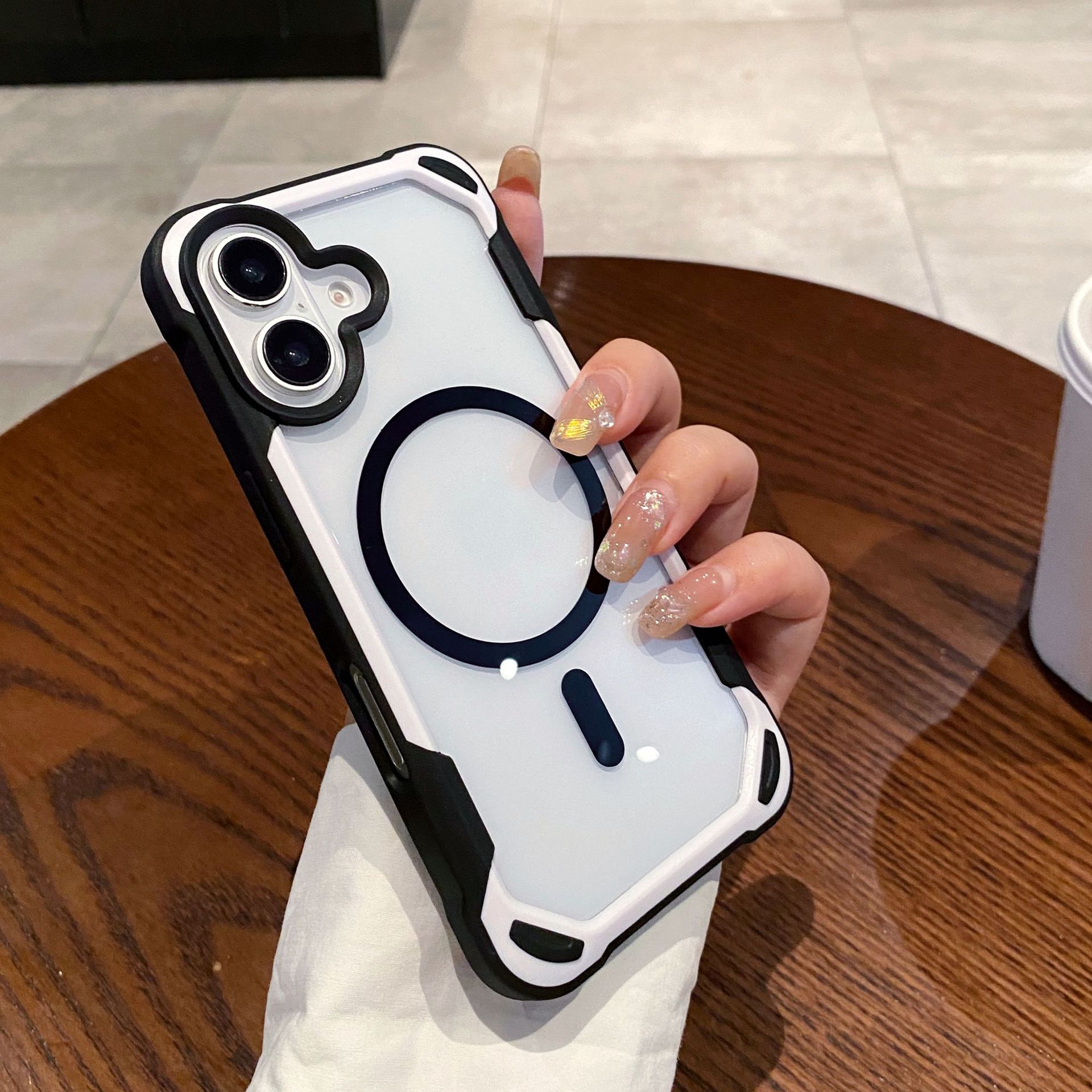 아이폰17프로맥스 마그네틱 휴대폰 케이스, 애플16에 적합, 패셔너블한 팬더 투톤 디자인, 13/15용 낙하 방지 보호 케이스스토어 가기
