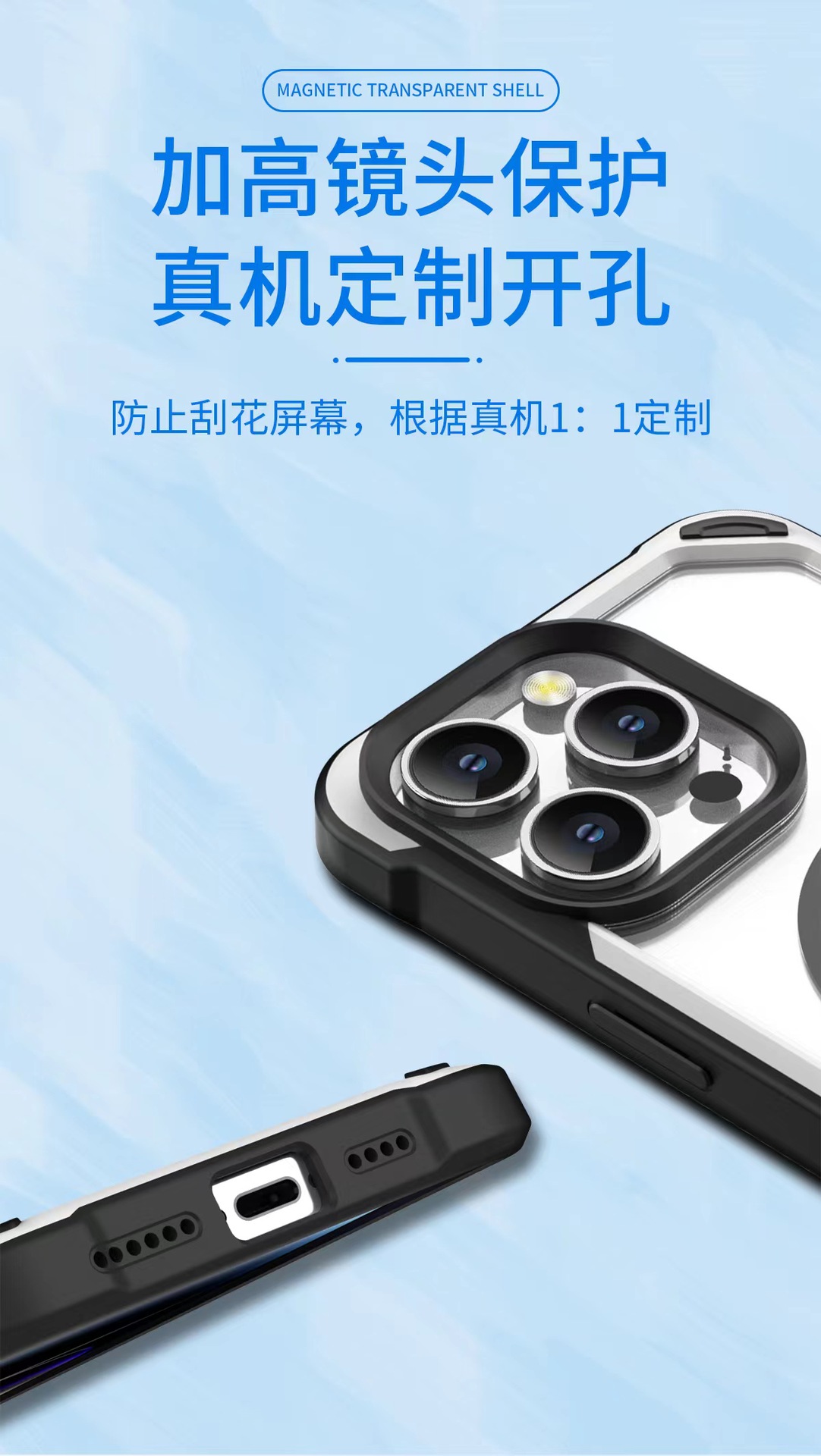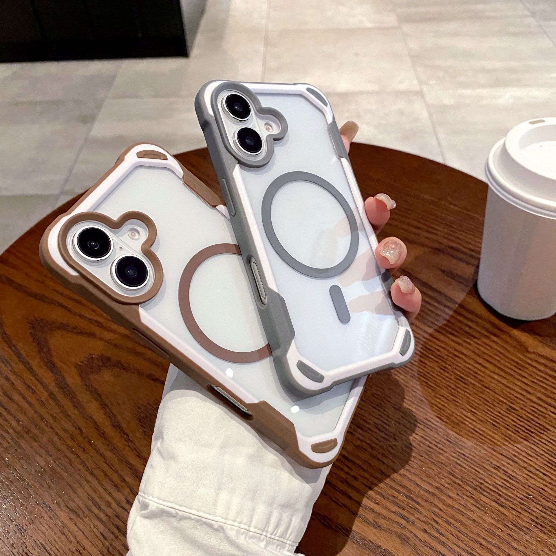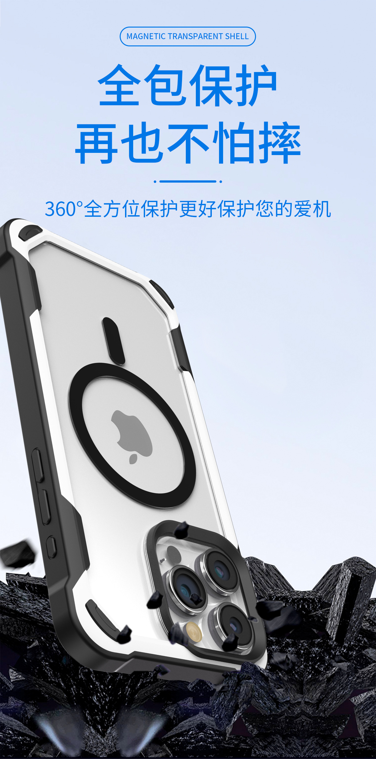 아이폰17프로맥스 마그네틱 휴대폰 케이스, 애플16에 적합, 패셔너블한 팬더 투톤 디자인, 13/15용 낙하 방지 보호 케이스스토어 가기
