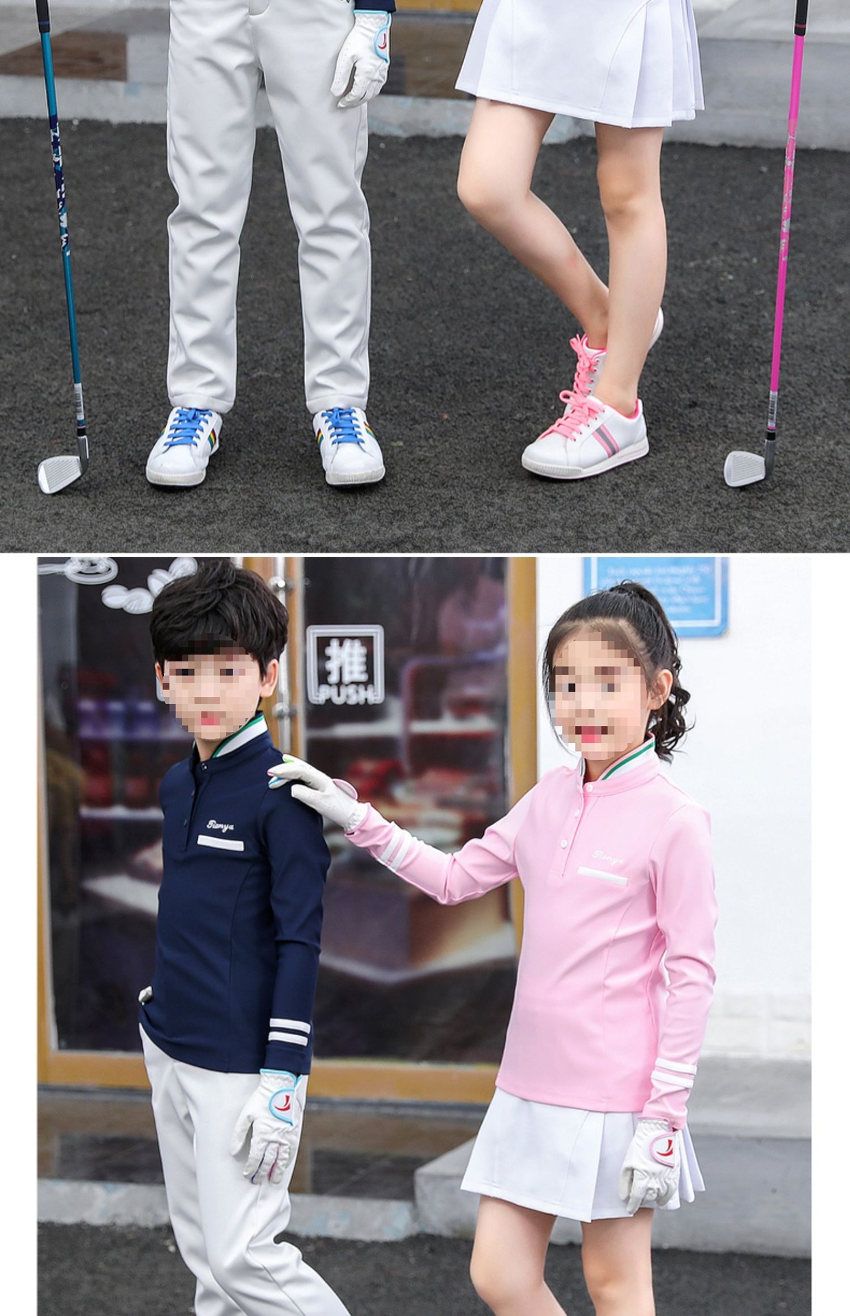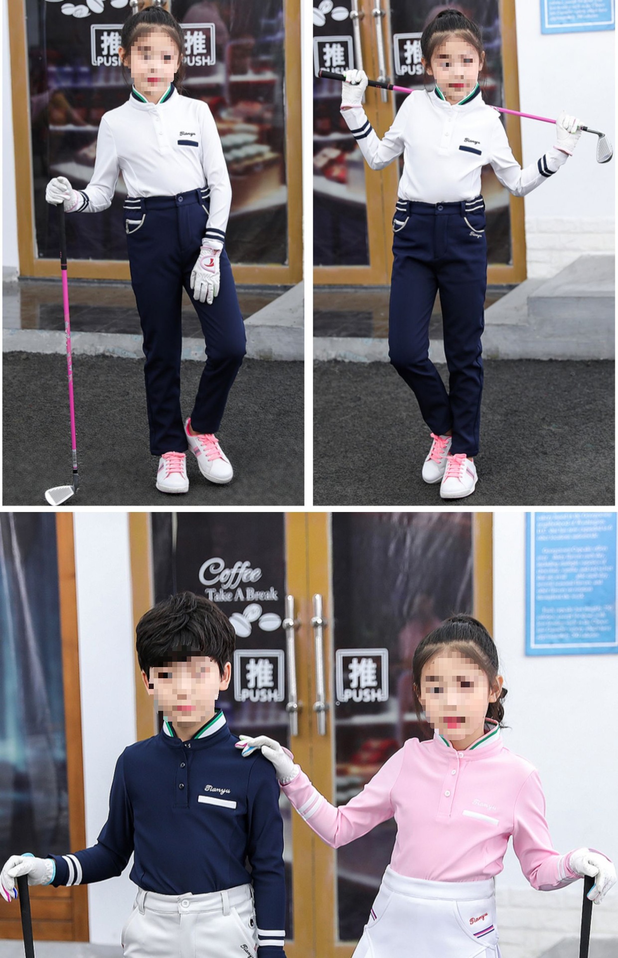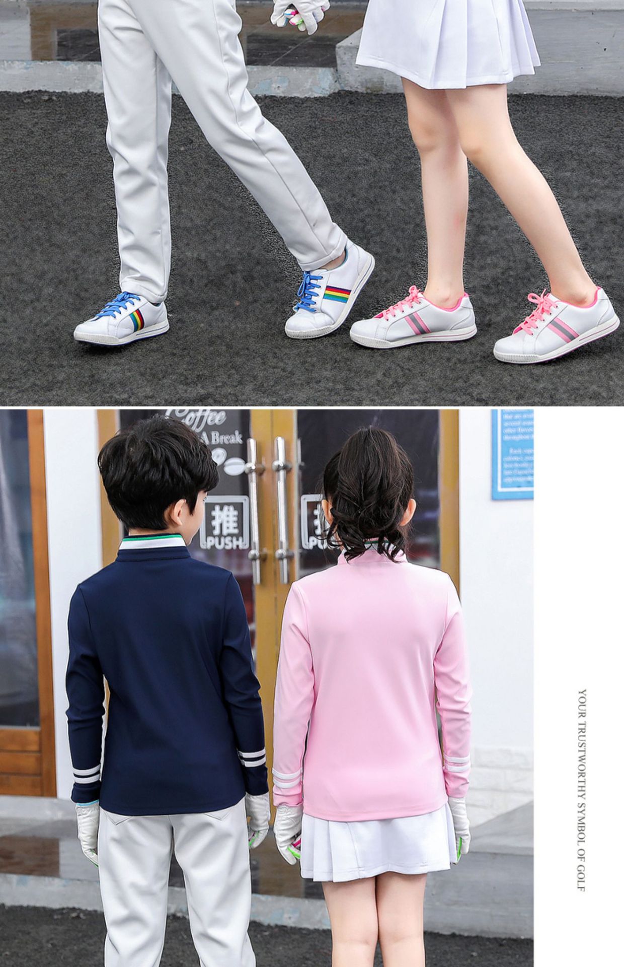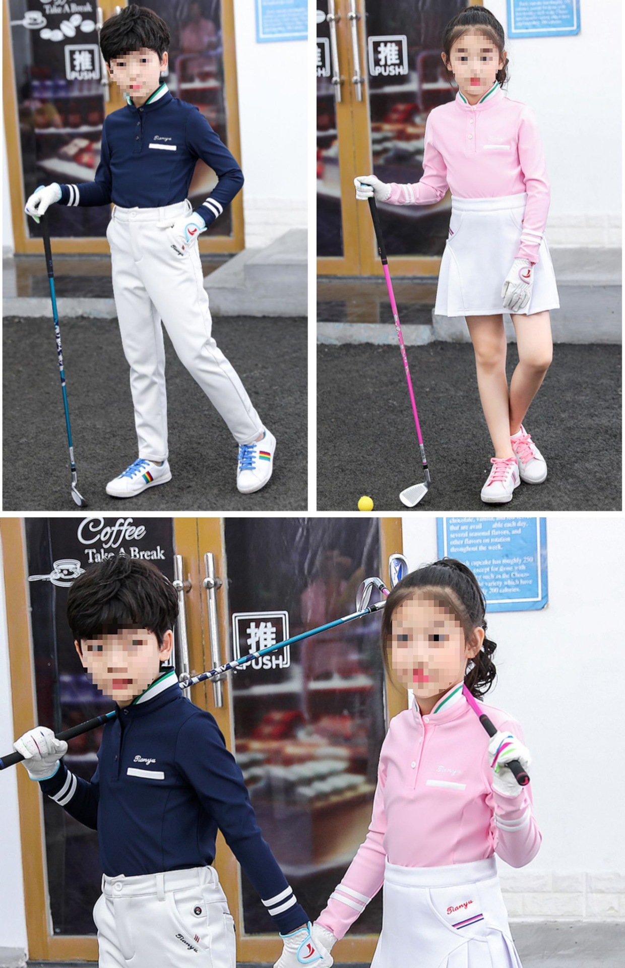골프 의류 소년 소녀 부모-어린이 긴팔 운동복 티셔츠 줄무늬 칼라 칼리지 스타일 스포츠웨어스토어 가기