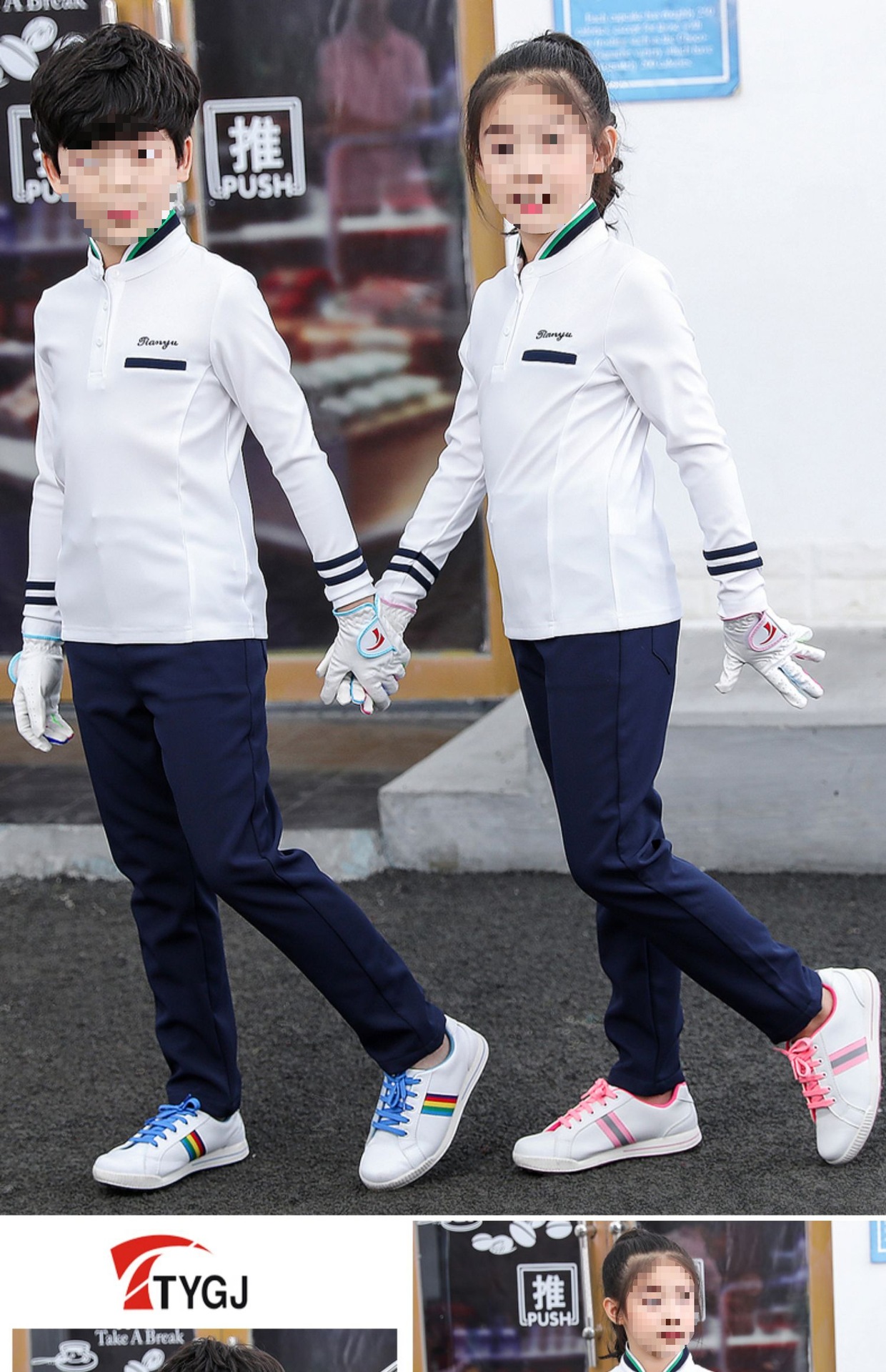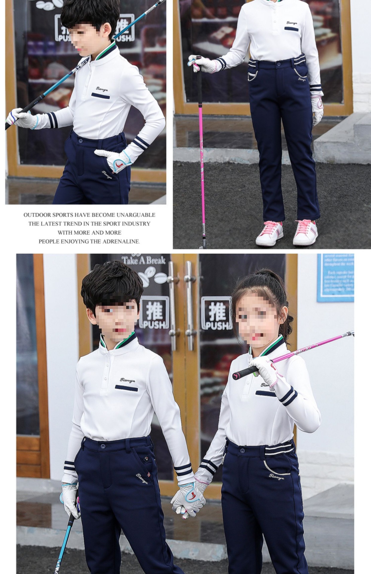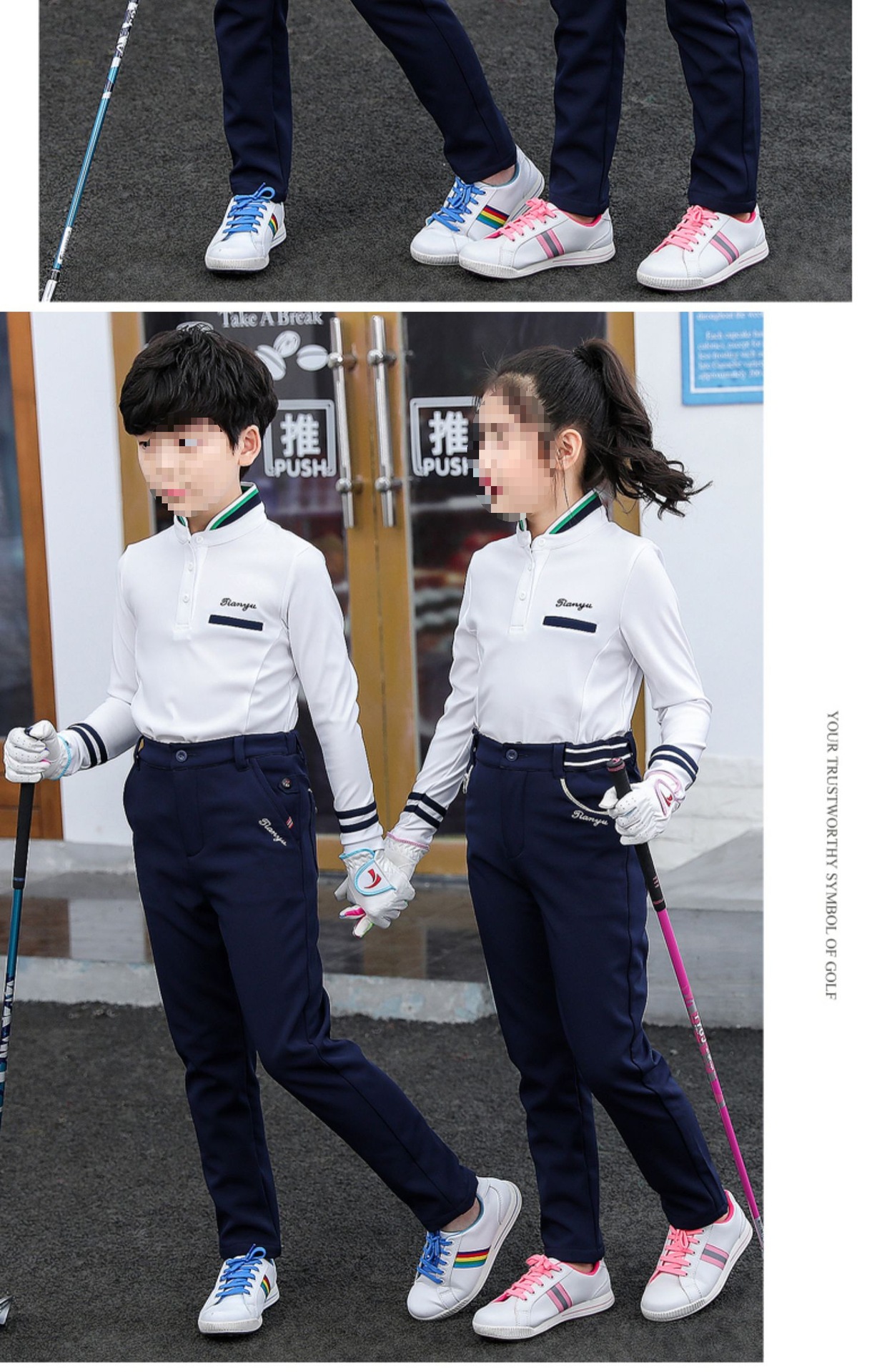 골프 의류 소년 소녀 부모-어린이 긴팔 운동복 티셔츠 줄무늬 칼라 칼리지 스타일 스포츠웨어스토어 가기