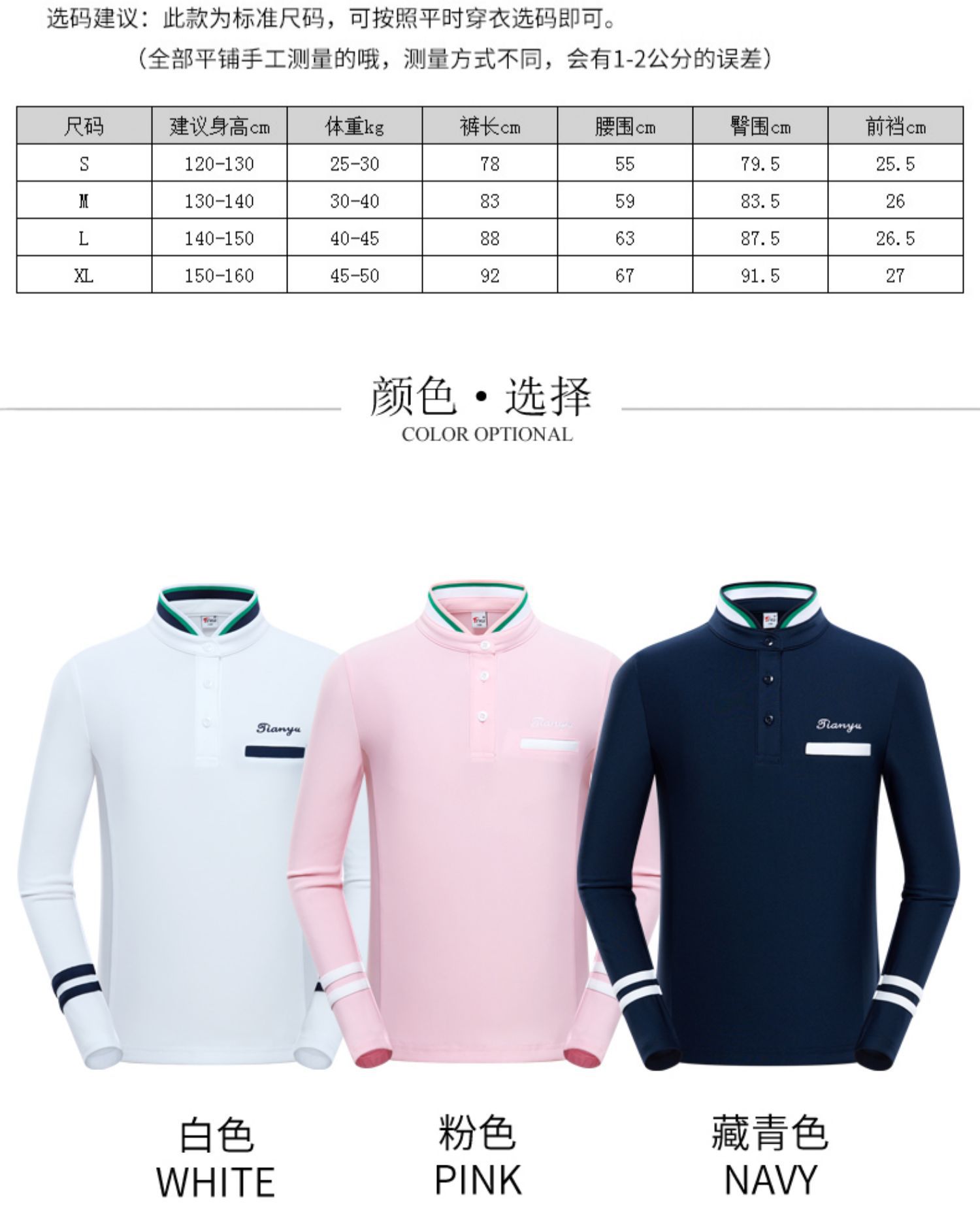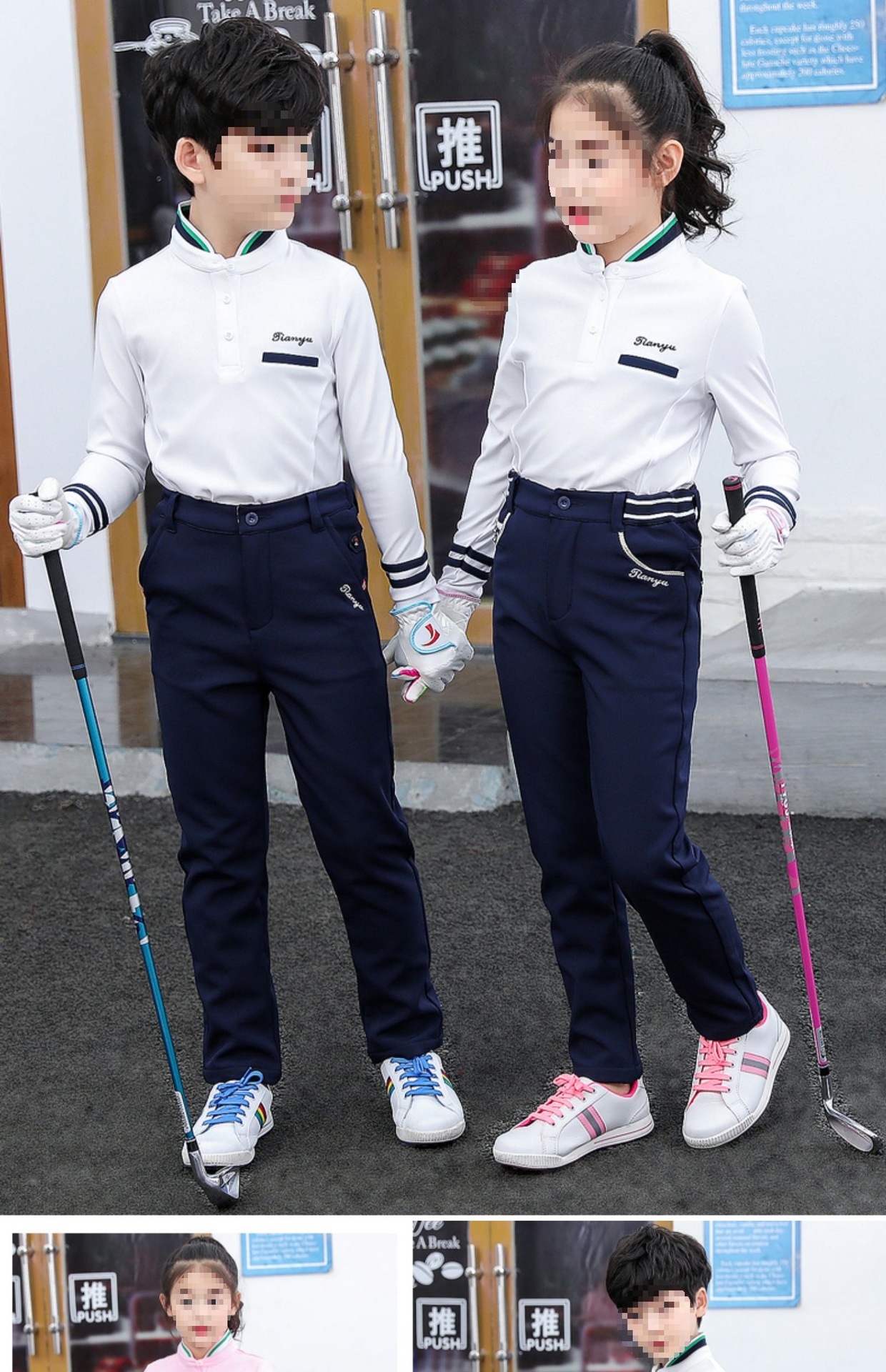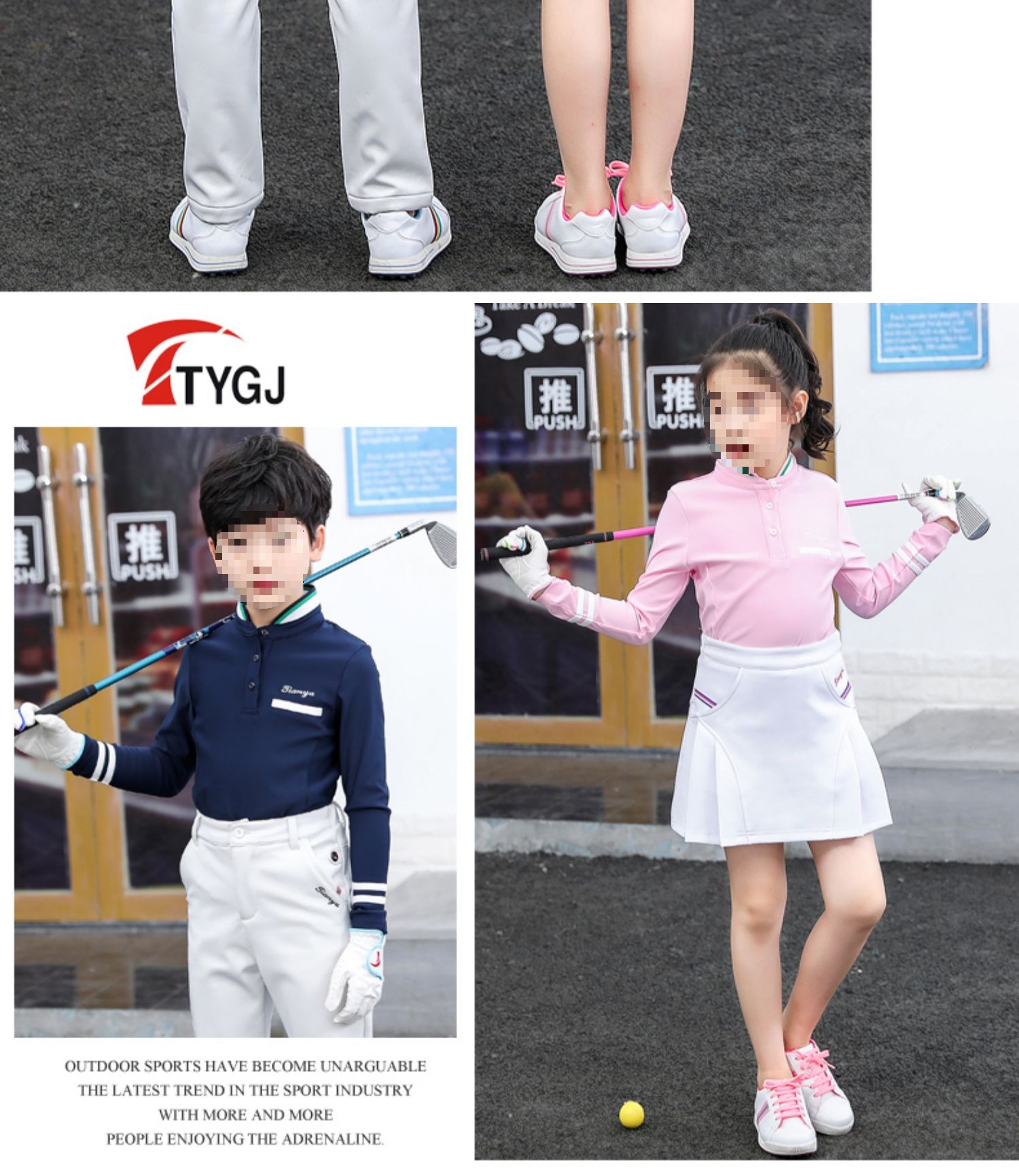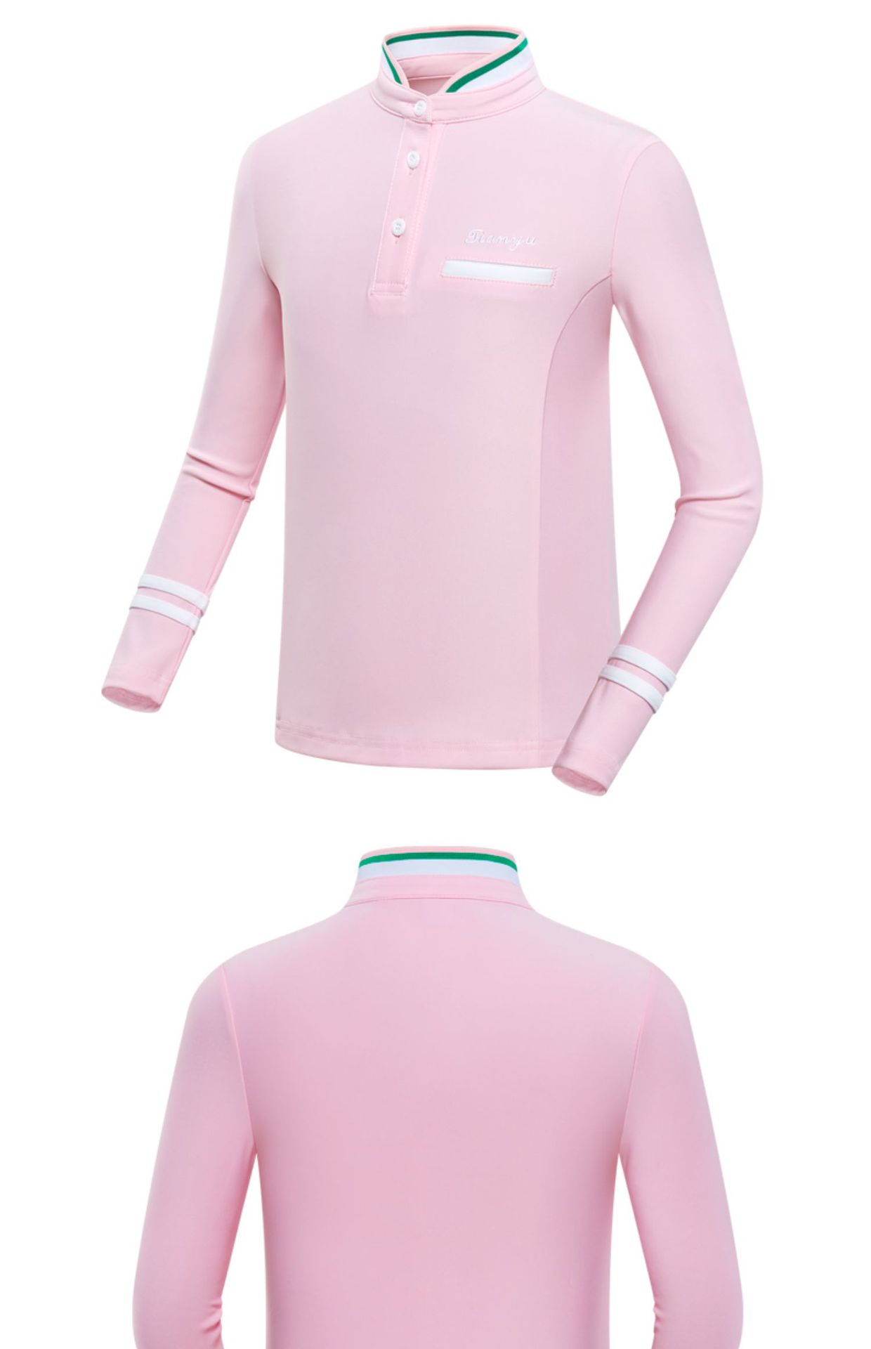 골프 의류 소년 소녀 부모-어린이 긴팔 운동복 티셔츠 줄무늬 칼라 칼리지 스타일 스포츠웨어스토어 가기