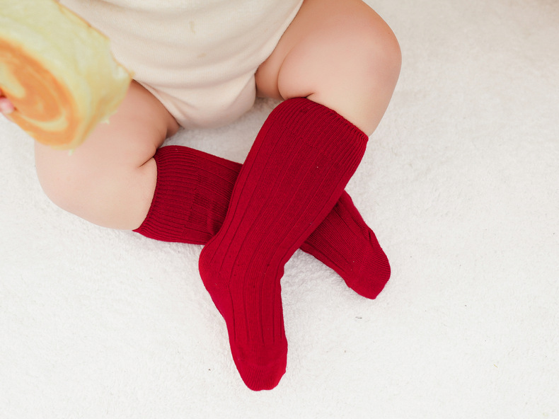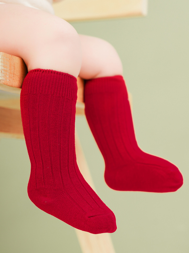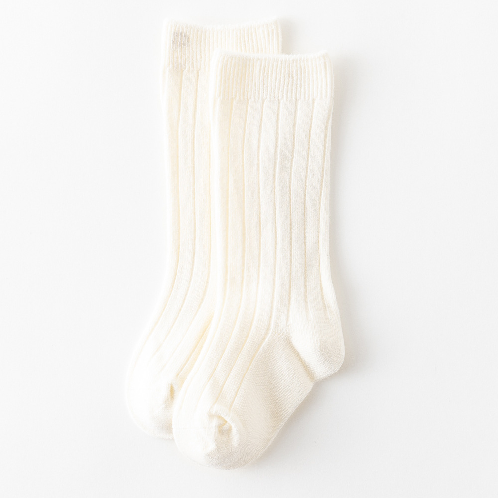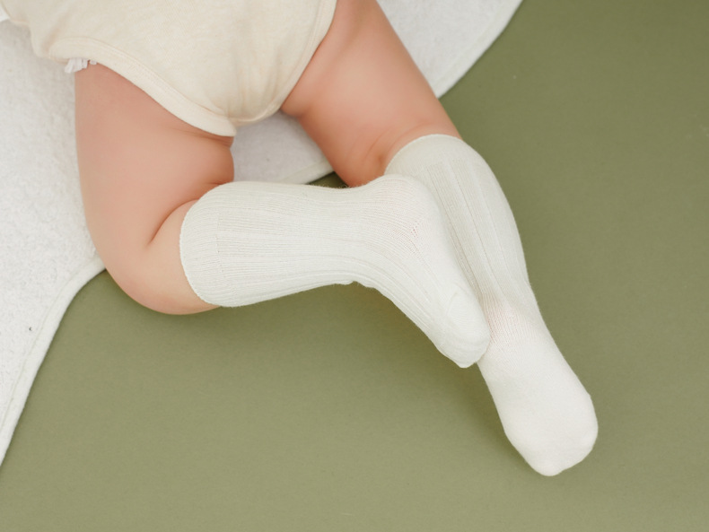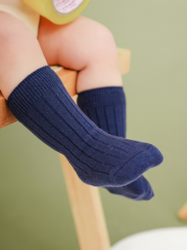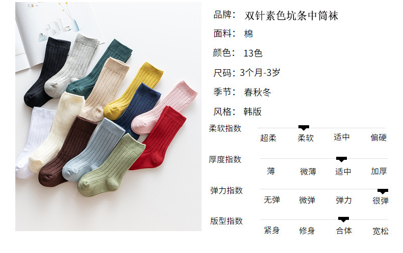 2025 봄과 가을 새로운 스페인어 스타일 어린이 양말 아기 스타킹 더블 바늘 일반 핏 스트립 겨울 중반 송아지 양말