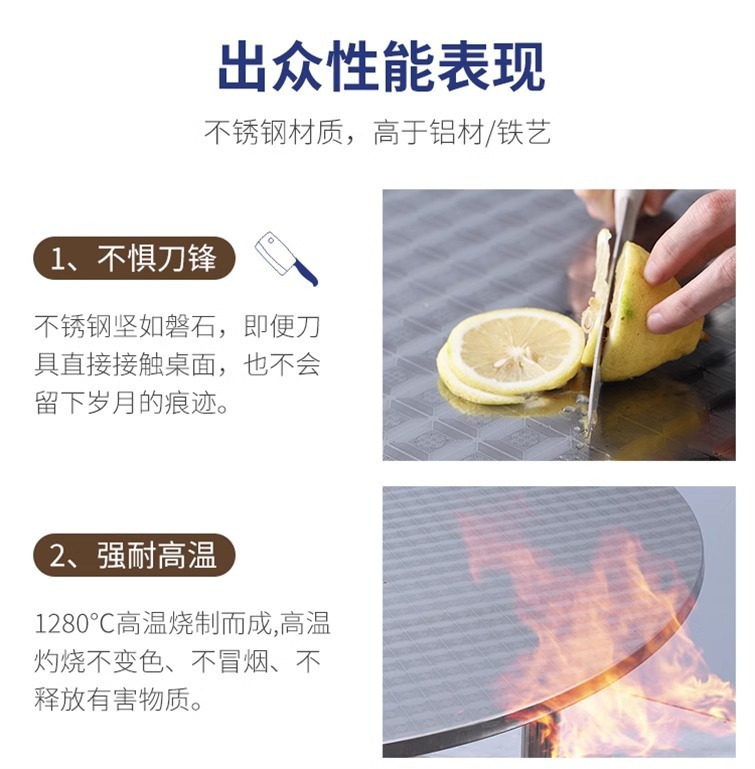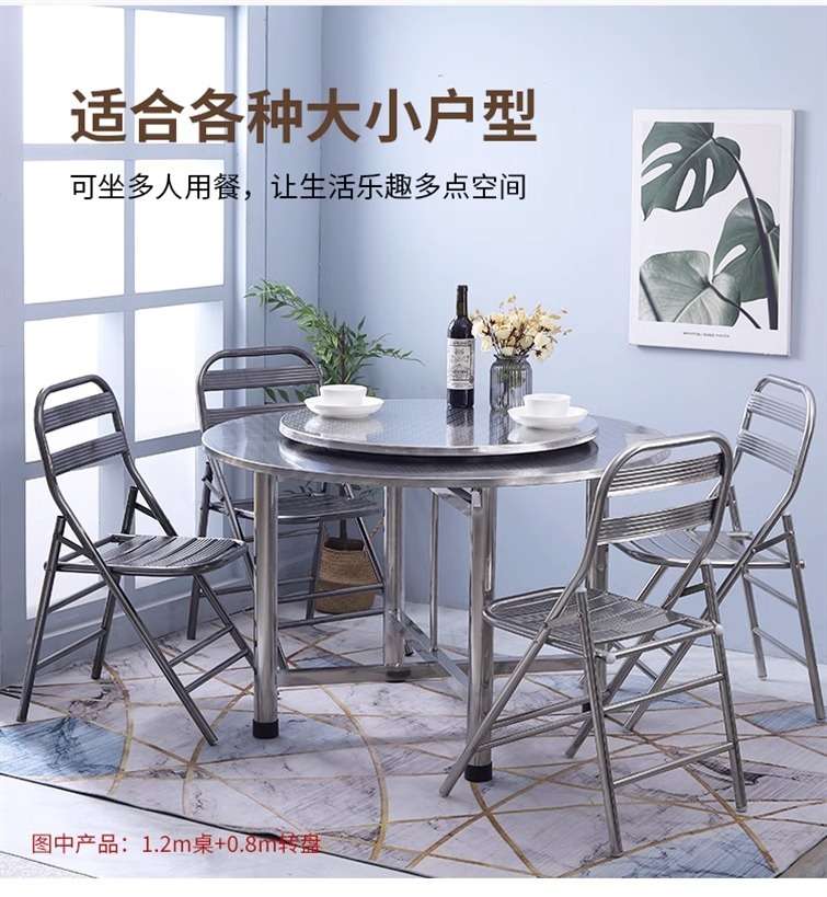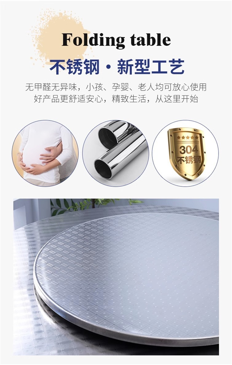 304 라운드 테이블 스테인레스 스틸 휴대용 저녁 식사 가구 접는 음식 스톨 라운드 테이블 매점 식당 다이닝 테이블 아마존