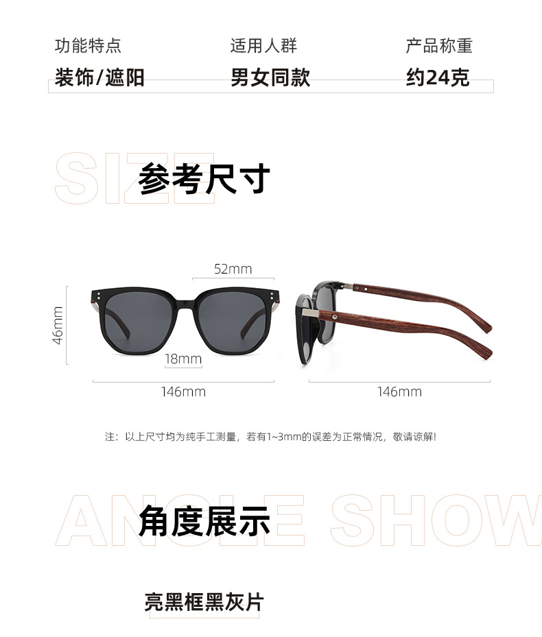 선글라스 남성과 여성 하이 엔드 센스 여름 뉴 우드 그레인 다리 쌀 네일 선글라스 박스 라운드 페이스 안경 패션 선글라스스토어 가기