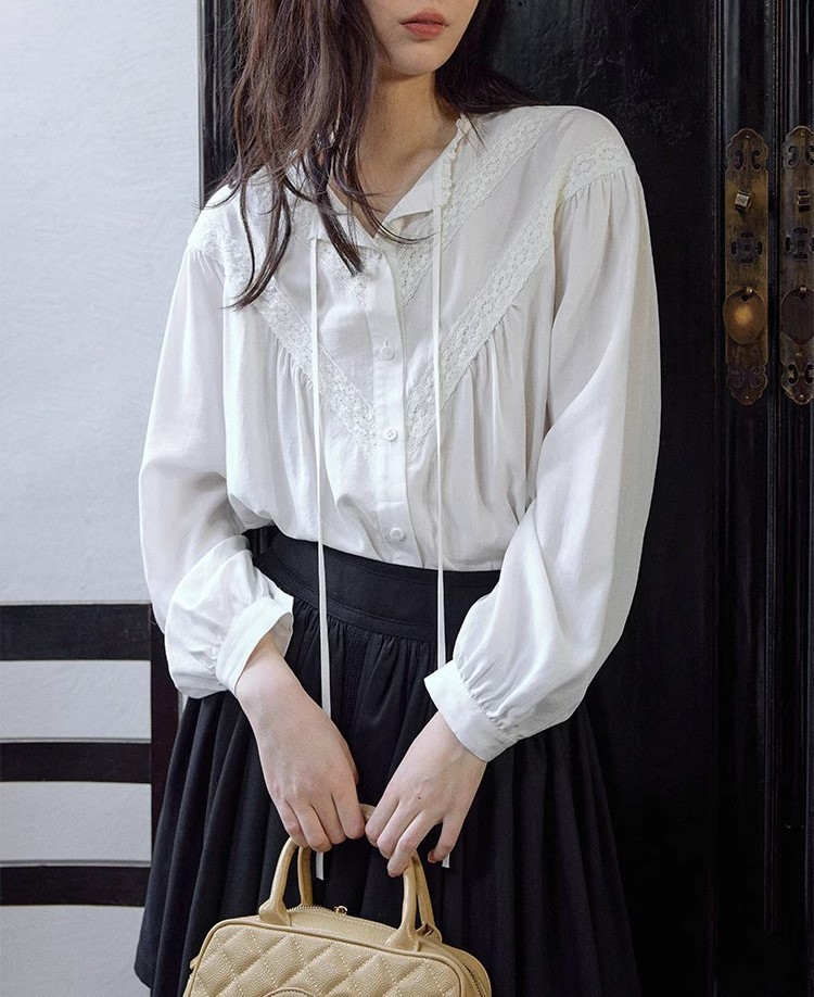 아름다운 황제의 심장 첫 번째 프랑스 레이스 칼라 긴팔 화이트 셔츠 여자 게으른 올 매치 이른 봄 탑스토어 가기