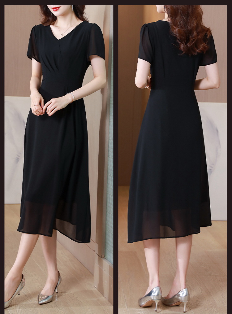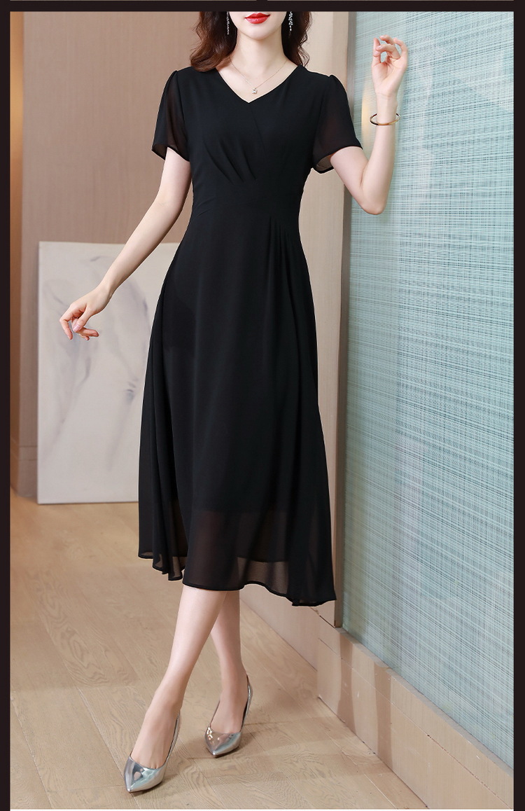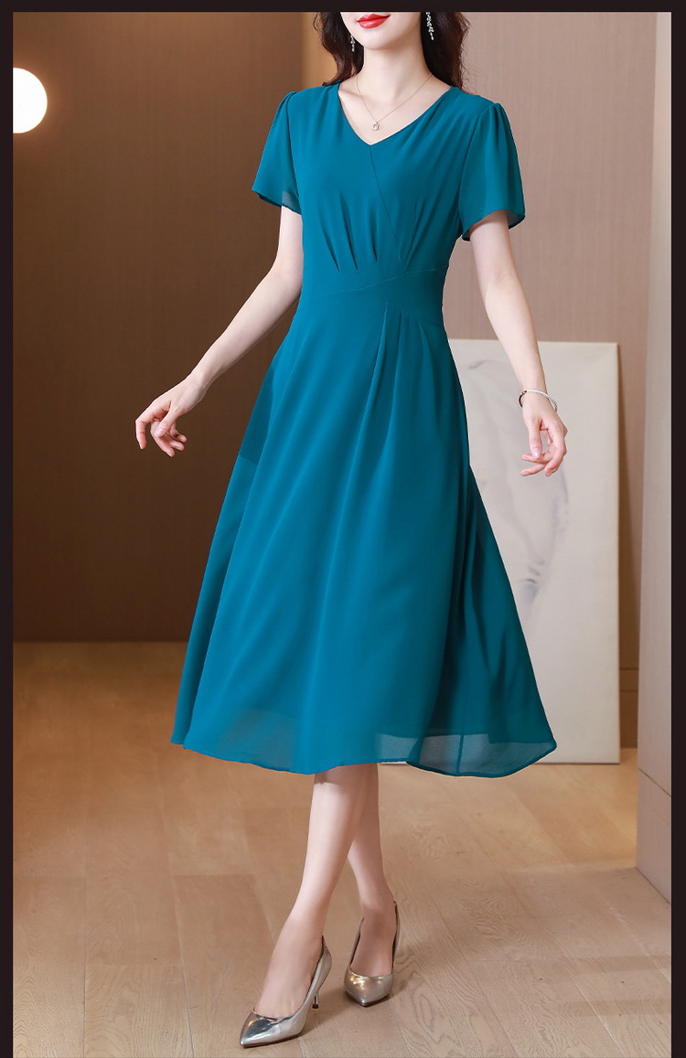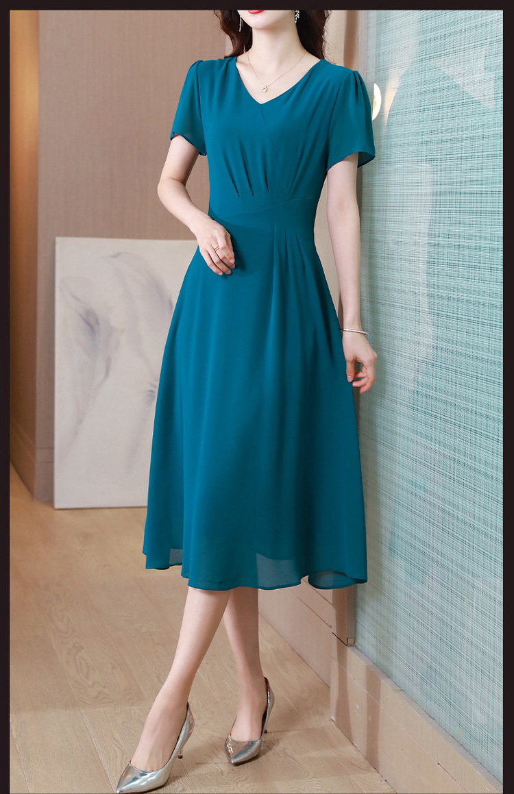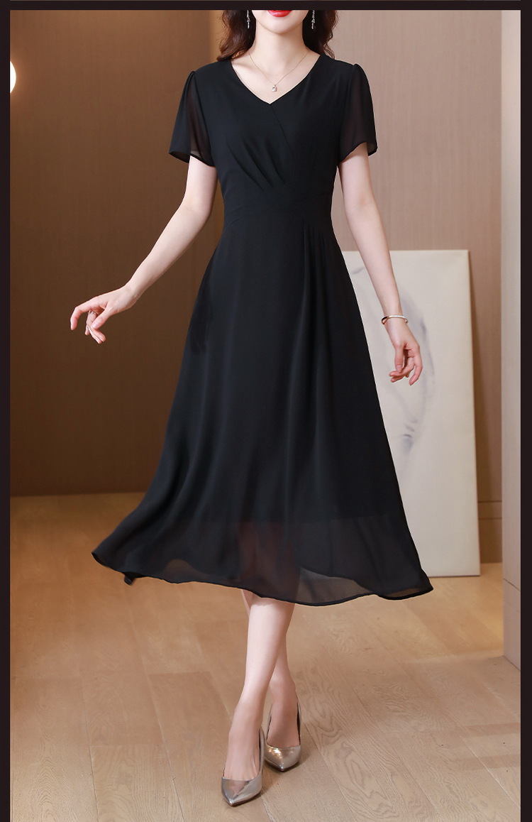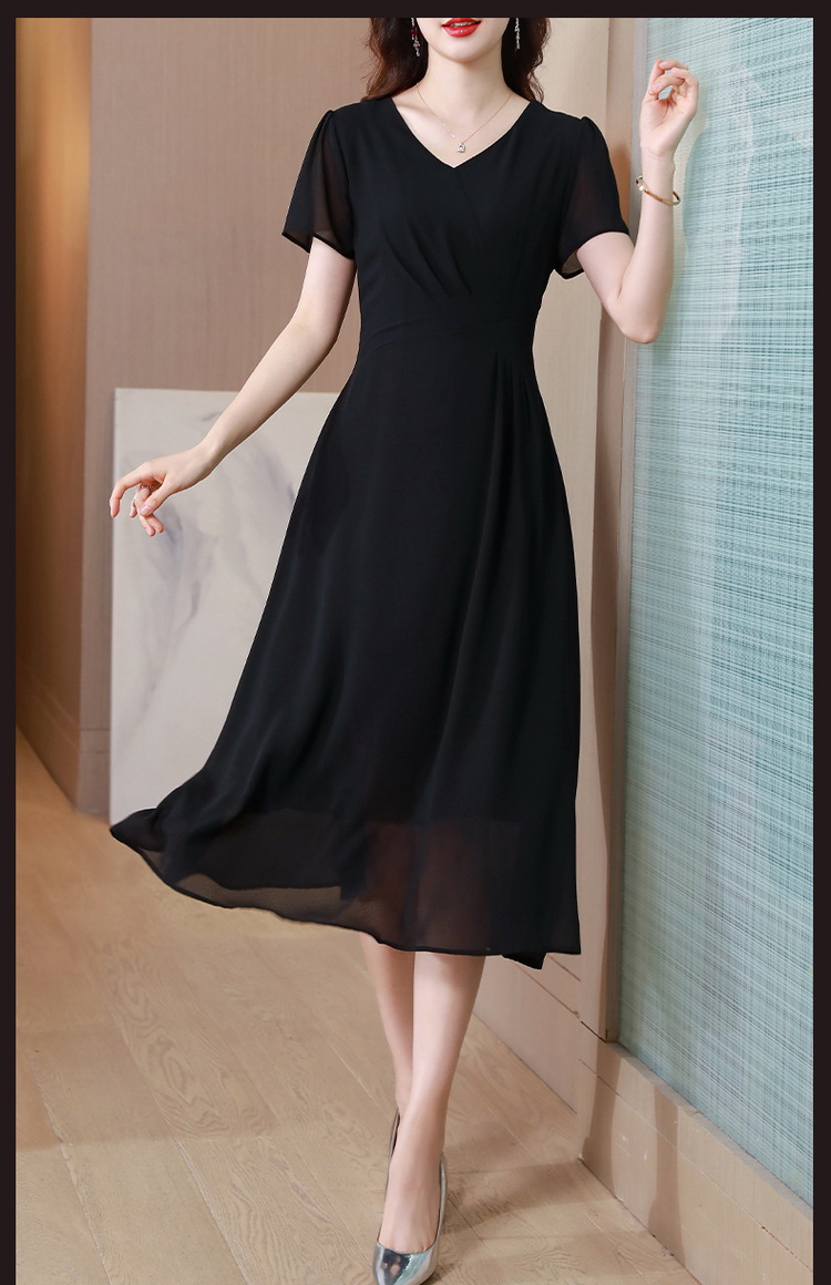 어머니의 날 여름 실크 원피스 여성 플러스 사이즈 패션 뽕나무 실크 V 넥 슬림 핏 미디 원피스
